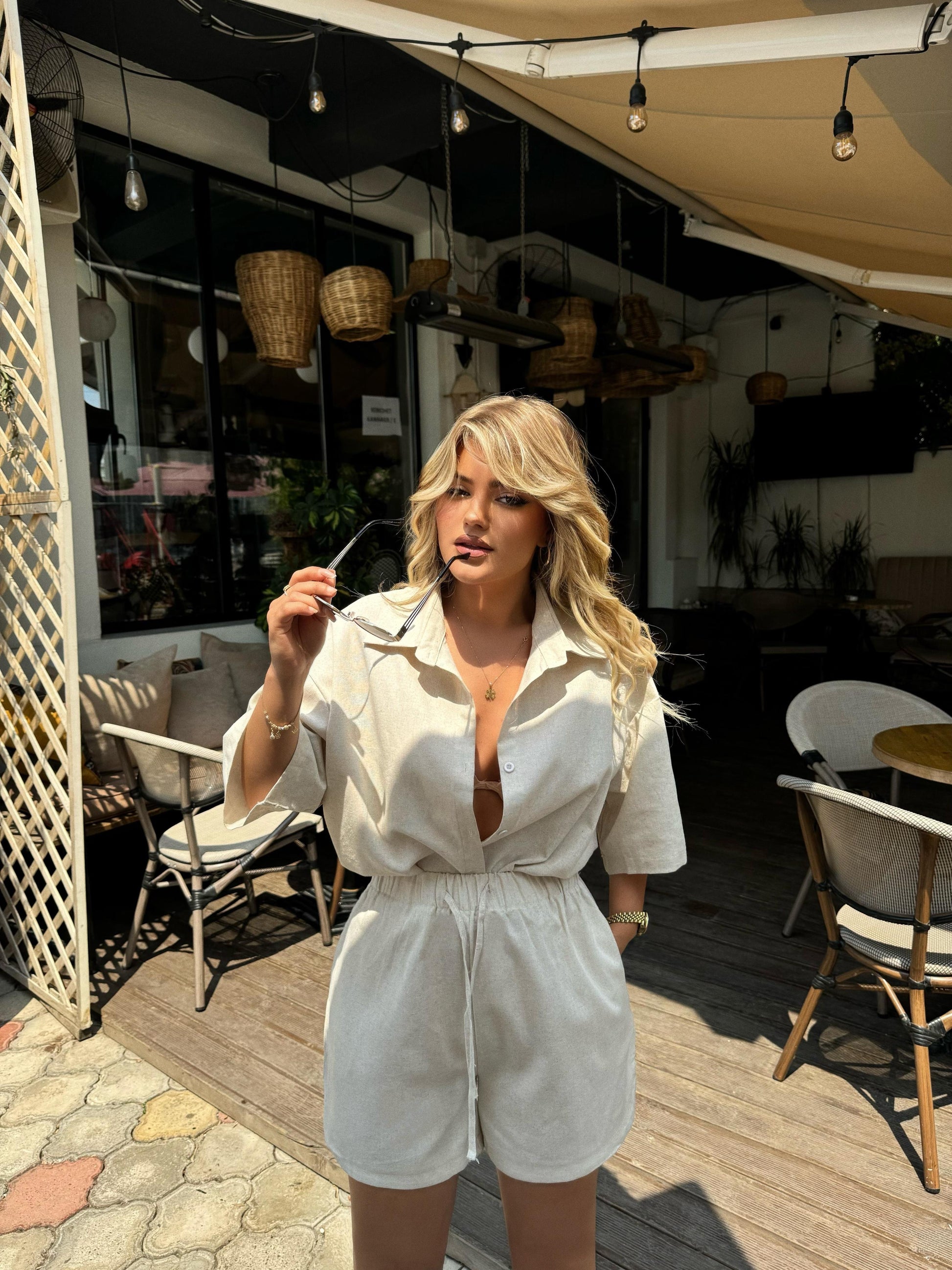 Set lino me kemishe dhe pantallona te shkurtra. Eshte shume i rehatshem dhe ka cilesi fantastike. Material i plote dhe komod.