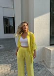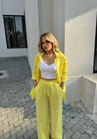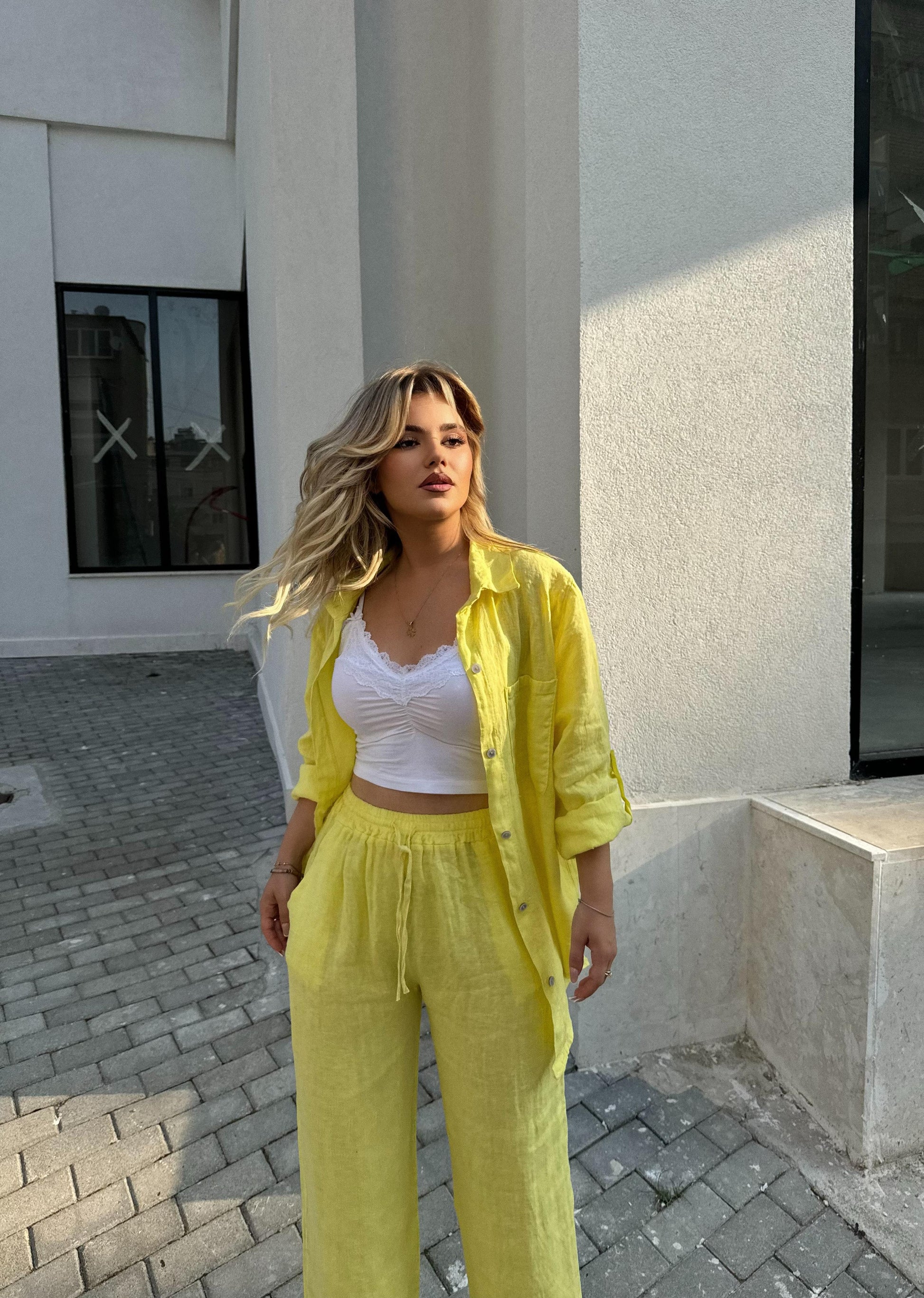 Set lino me kemishe me kopsa para dhe pantallona te gjata stil i gjere. Ka lirshmeri dhe eshte teper komod. Ka material te plote dhe cilesi fantastike.