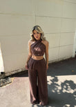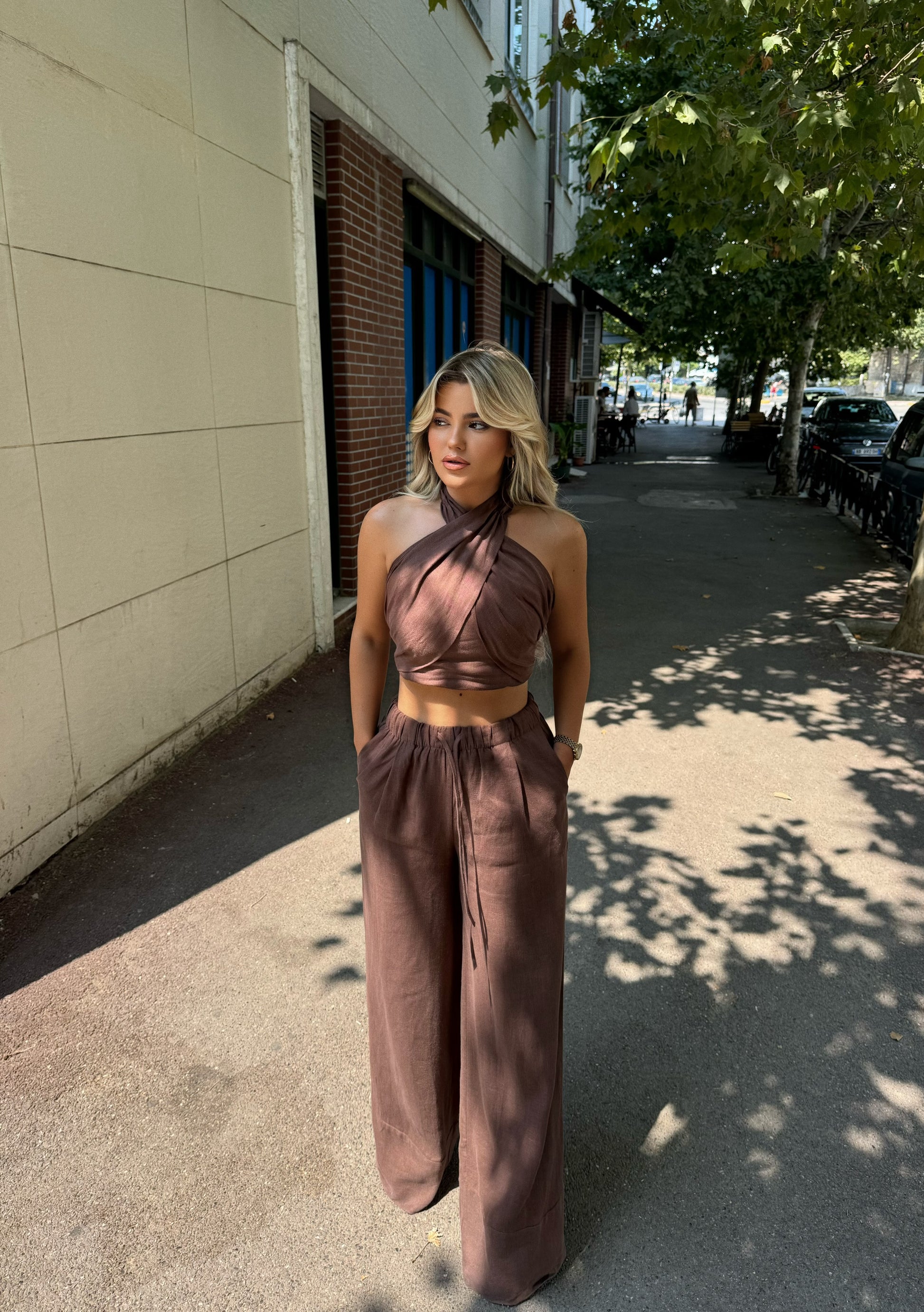 Set lino me crop dhe pantallona te gjata me llastik ne bel. Ka material te plote dhe cilesi fantastike. Teper komod dhe stil.