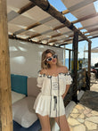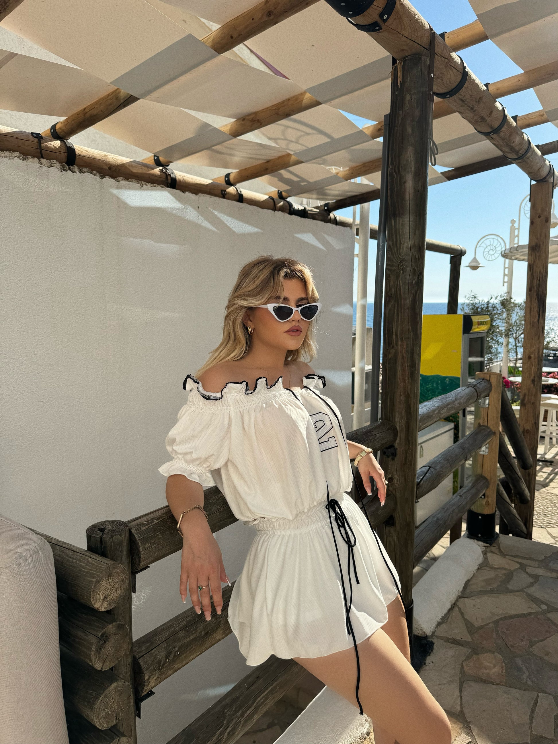 Set me dy pjese me crop dhe fund te shkurter. Eshte ne ngjyren e bardhe dhe vjen me llastik. Ka material te plote dhe cilesi fantastike.