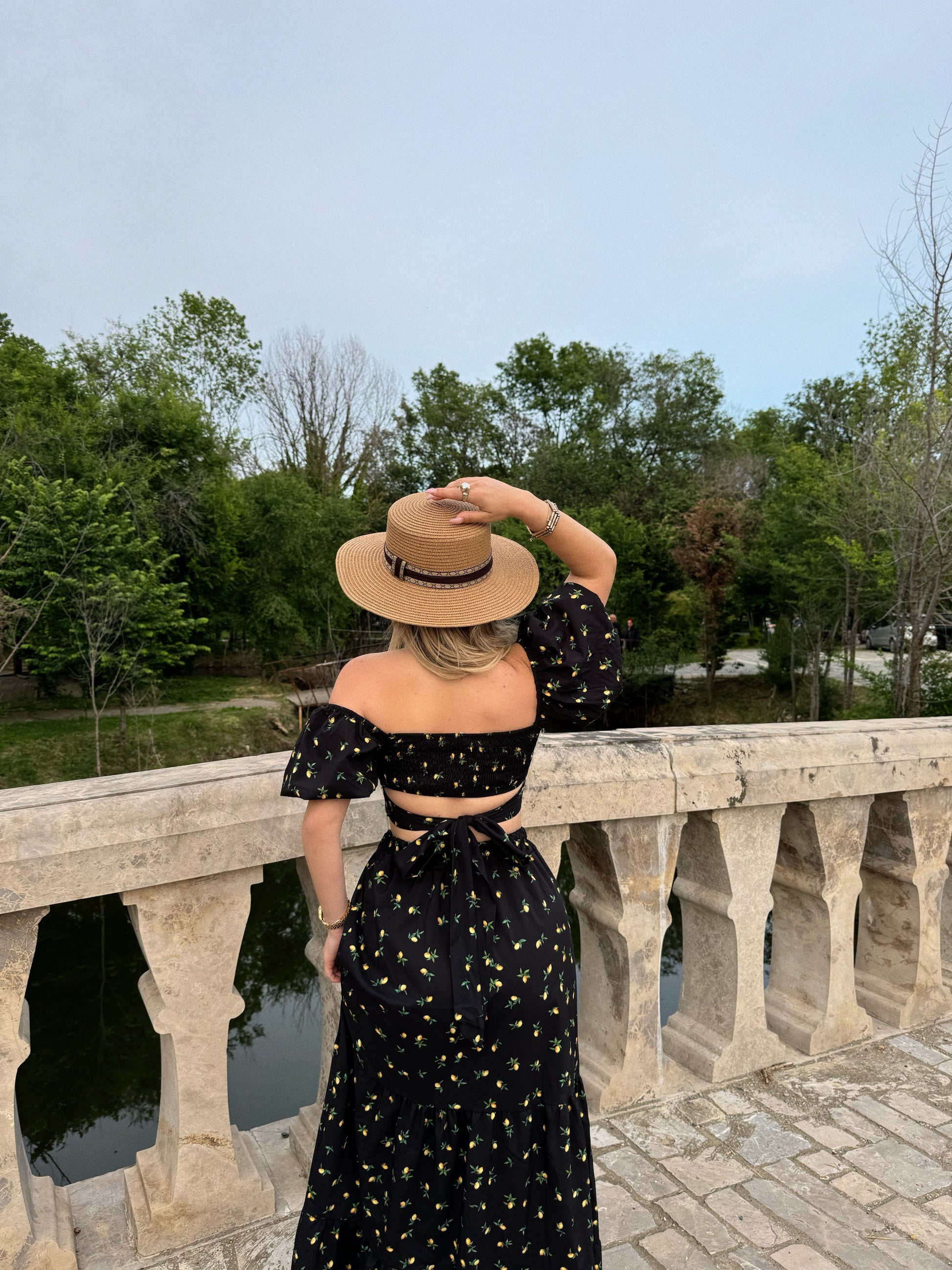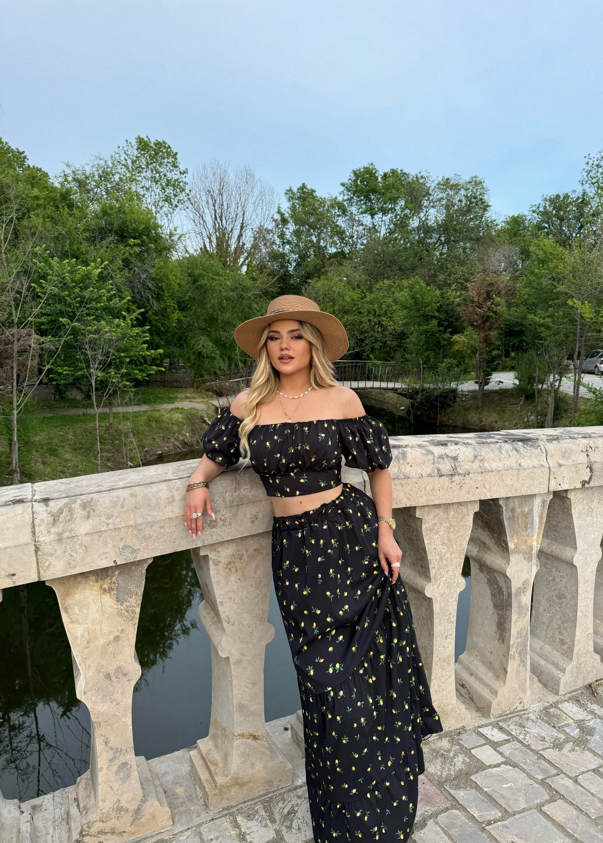 Set me dy pjese me crop me lidhje pas dhe fund te gjate. Eshte me detaje me limona. Shume komod dhe praktik. Ka material dhe cilesi fantastike.