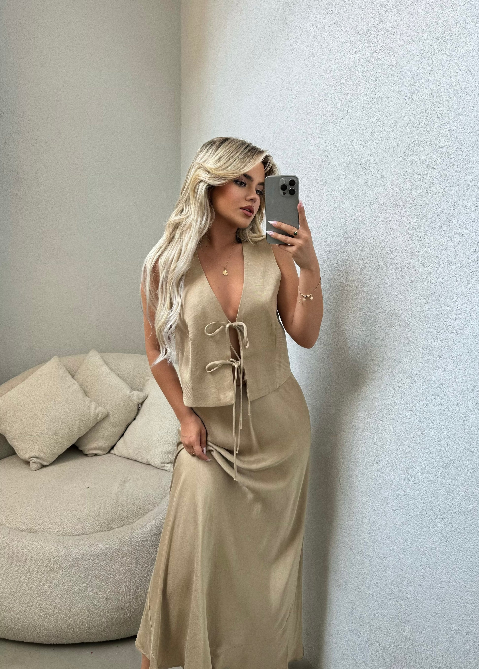 Set me dy pjese. Eshte me jelek me lidhje para dhe fund te gjate. Ka material te plote dhe cilesi fantastike.