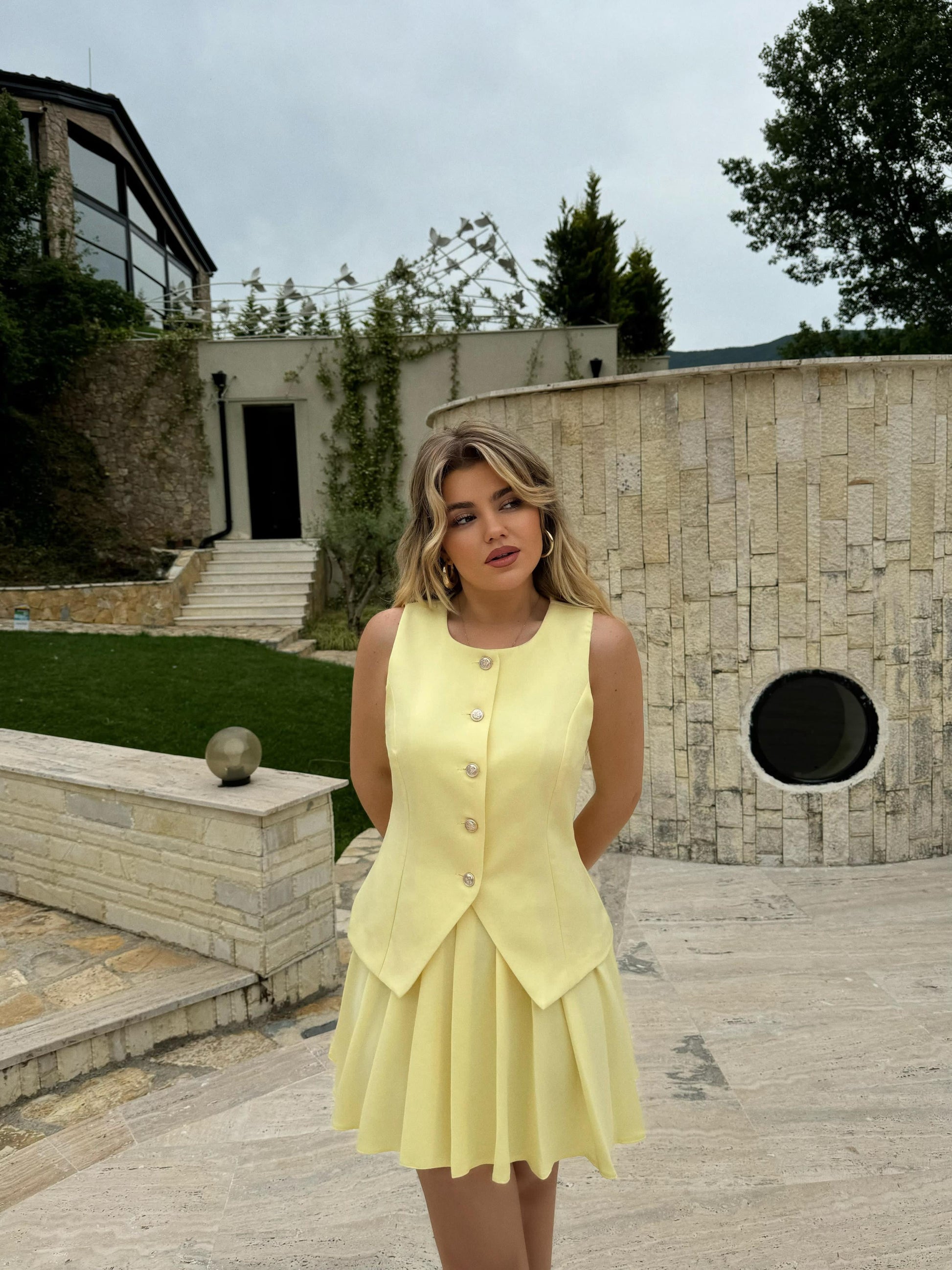 Set me jelek dhe fund te shkurter. Jeleku eshte me kopsa para,kurse fundi me pala. Ka super cilesi dhe rri yll ne trup.