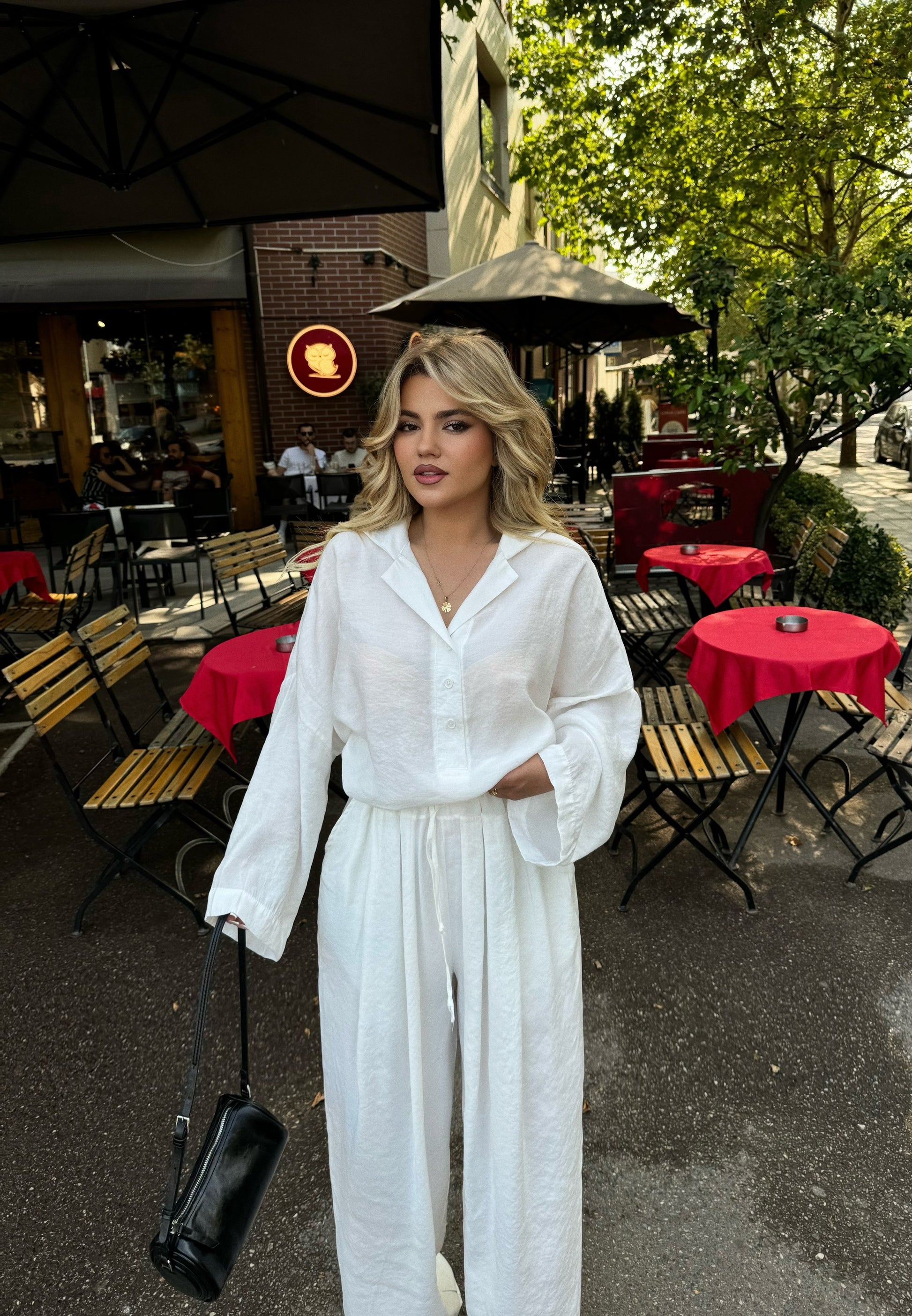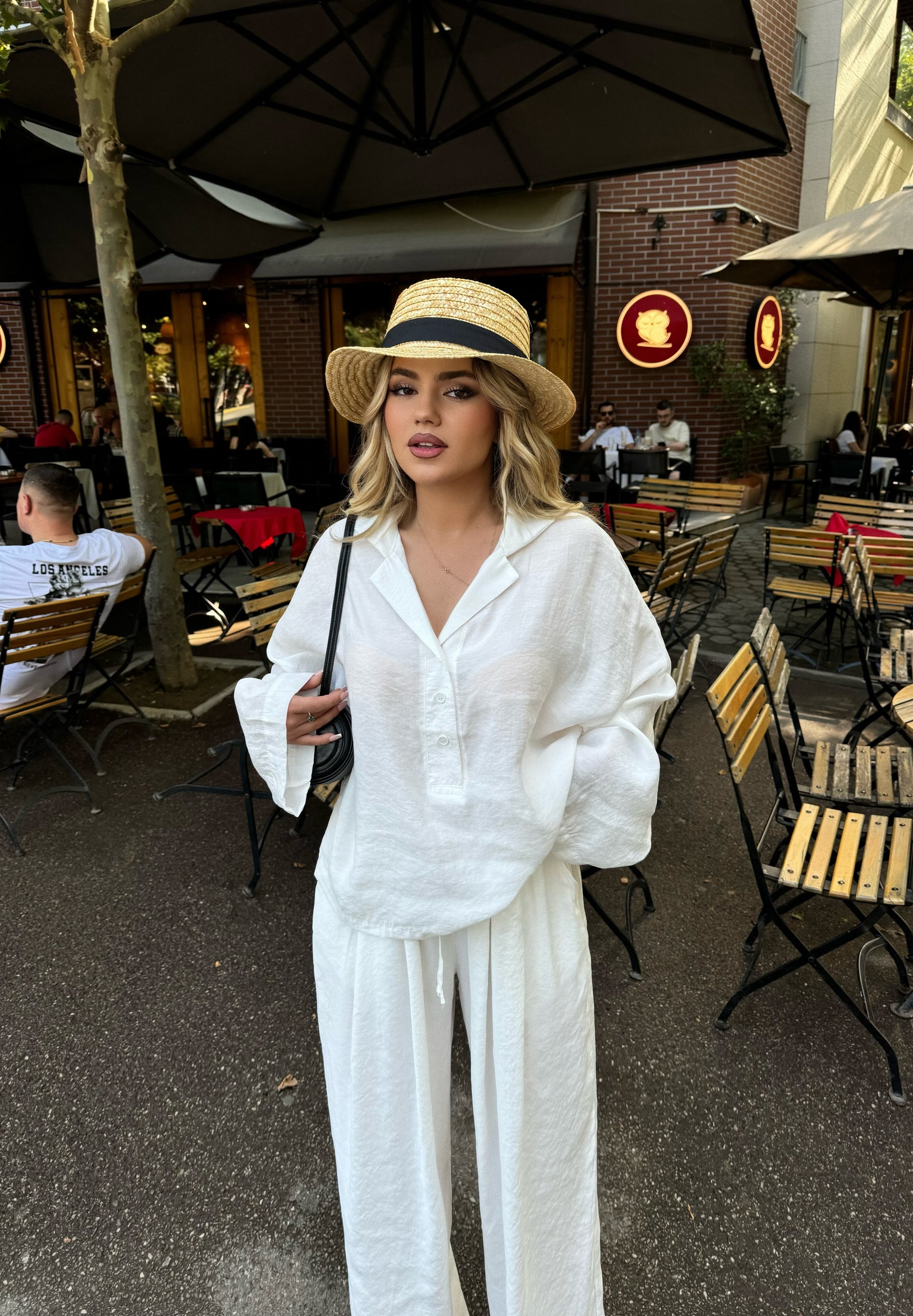 Set me kemishe dhe pantallona te gjate. Eshte i thjeshte dhe shume komod. Ka material te plote dhe cilesi fantastike.