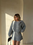 Seti me dy pjese, i cili perbehet nga pulovra me nje dizajn te vecante me nje fjongo elegante ne pjesen e qafes, dhe fundi i shkurter. Material i plote dhe i ngrohte. Ideal per tu dukur e embel dhe stil.