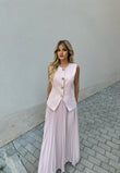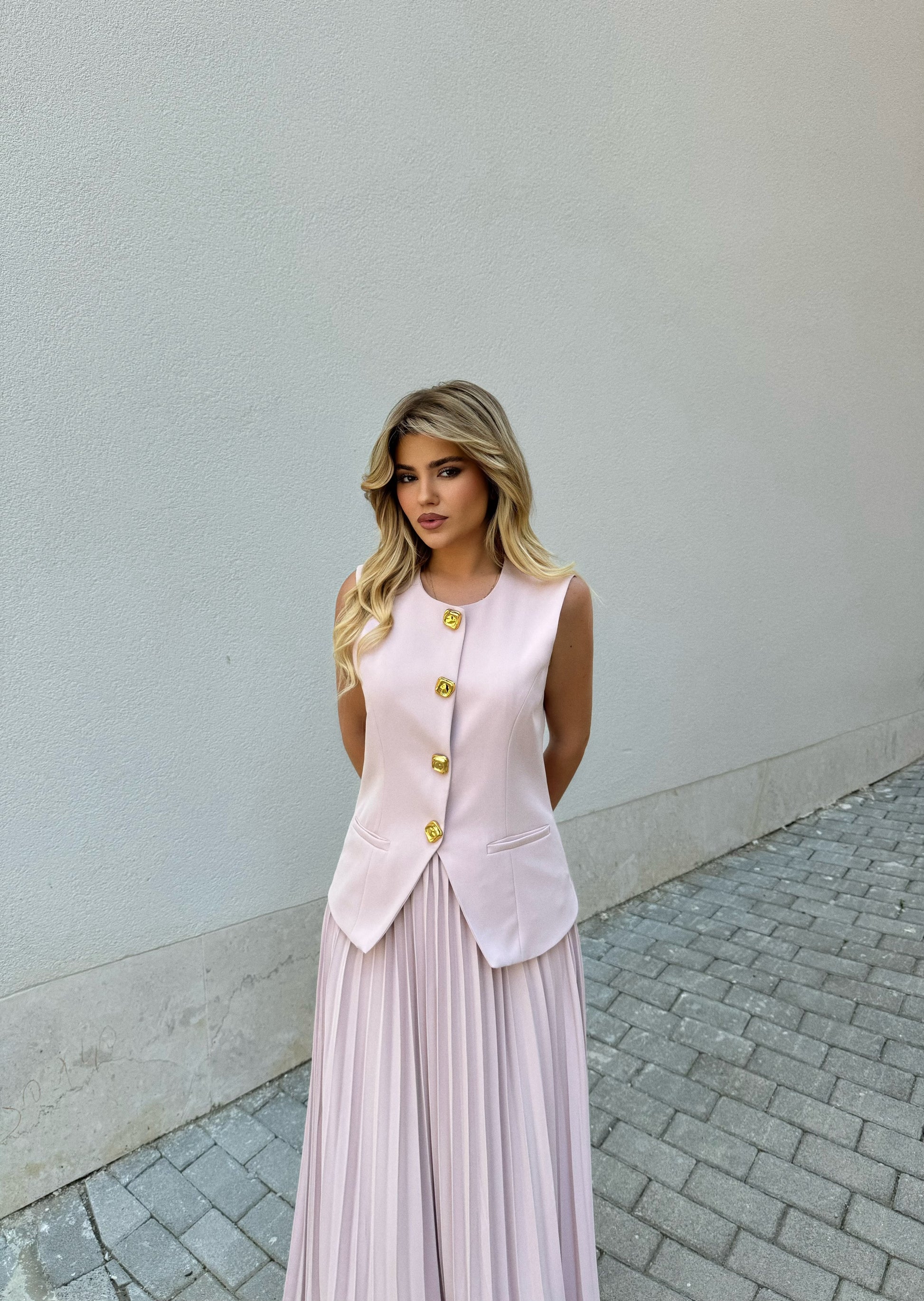 Set me dy pjese. Eshte me jelek me kopsa para dhe fund te gjate me pala. Ka material te plote dhe cilesi fantastike.