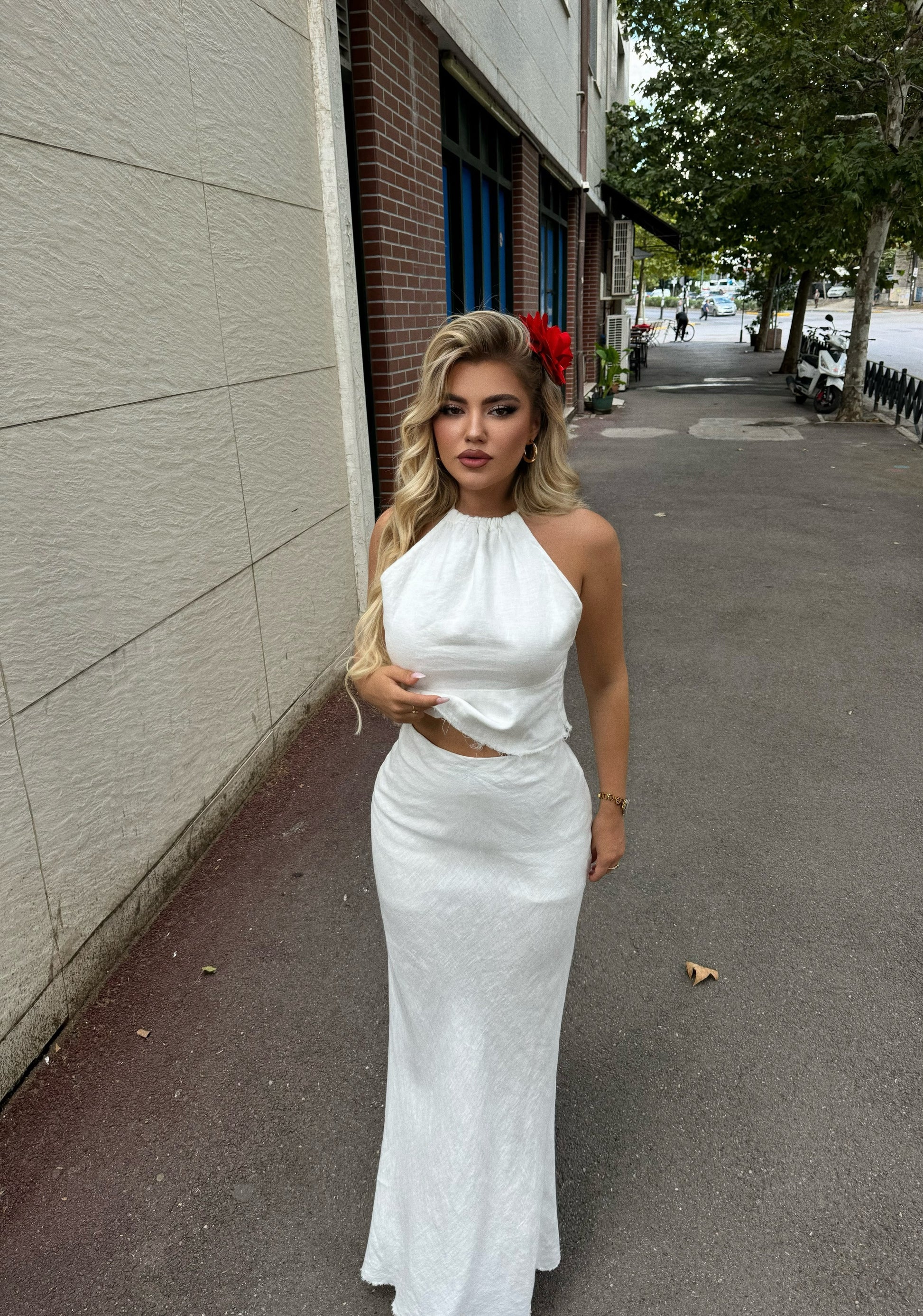 Set me dy pjese , vjen me jelek dhe fund te gjate. I fresket dhe shume komod. Ka material te plote me nje cilesi fantastike.