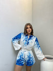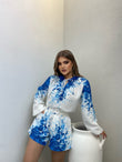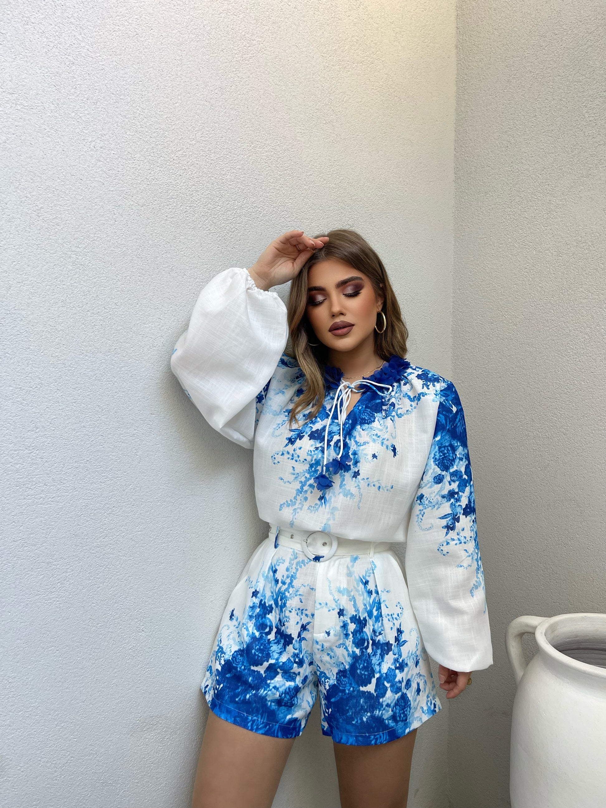 Set me kemishe dhe pantallona. Kemisha ka jake ne forme rrethore dhe vjen me krahe te gjate. Pantallonat vijne me rrip ne mes dhe material te plote. Cilesi fantastike dhe detaje super te bukura.