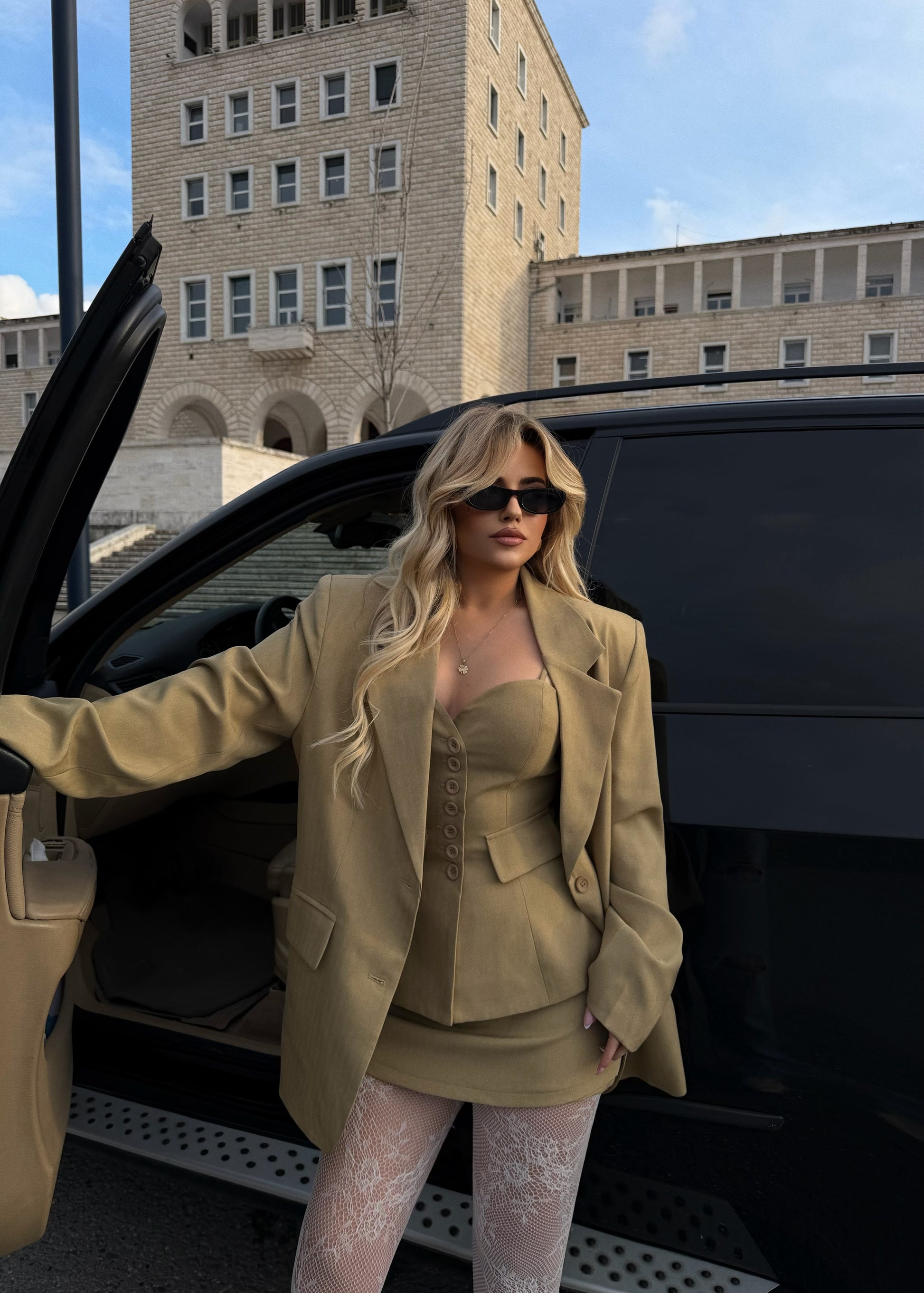 Set xhakete, fundpantallona dhe kanatiere me kopsa para. Xhakete me astar brenda.