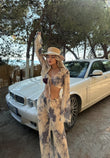 Set me dy pjese per plazh. Eshte me crop te hapur dhe pantallona te gjata stil i gjere. Ka material dhe cilesi fantastike.