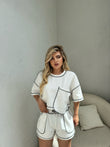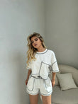 Set sportiv me dy pjese. Eshte me bluze te shkurter me xhep anash dhe pantallona te shkurtra. Material i plote dhe cilesi fantastike.