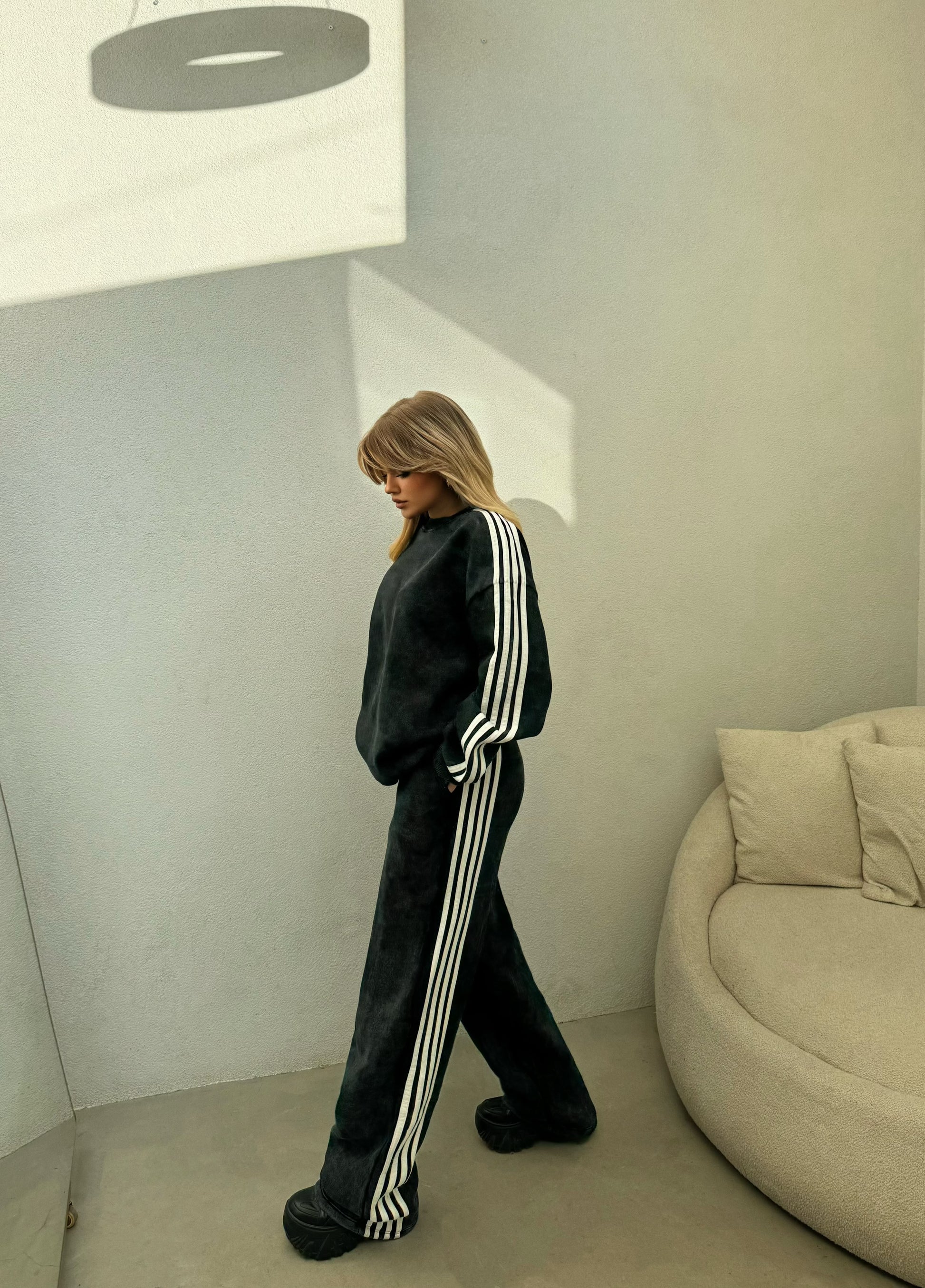 Kostum sportiv me dy pjese. Vjen ne material te plote, shume te bute dhe komod ne trup. Zgjedhje perfekte per perditshmeri.