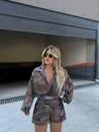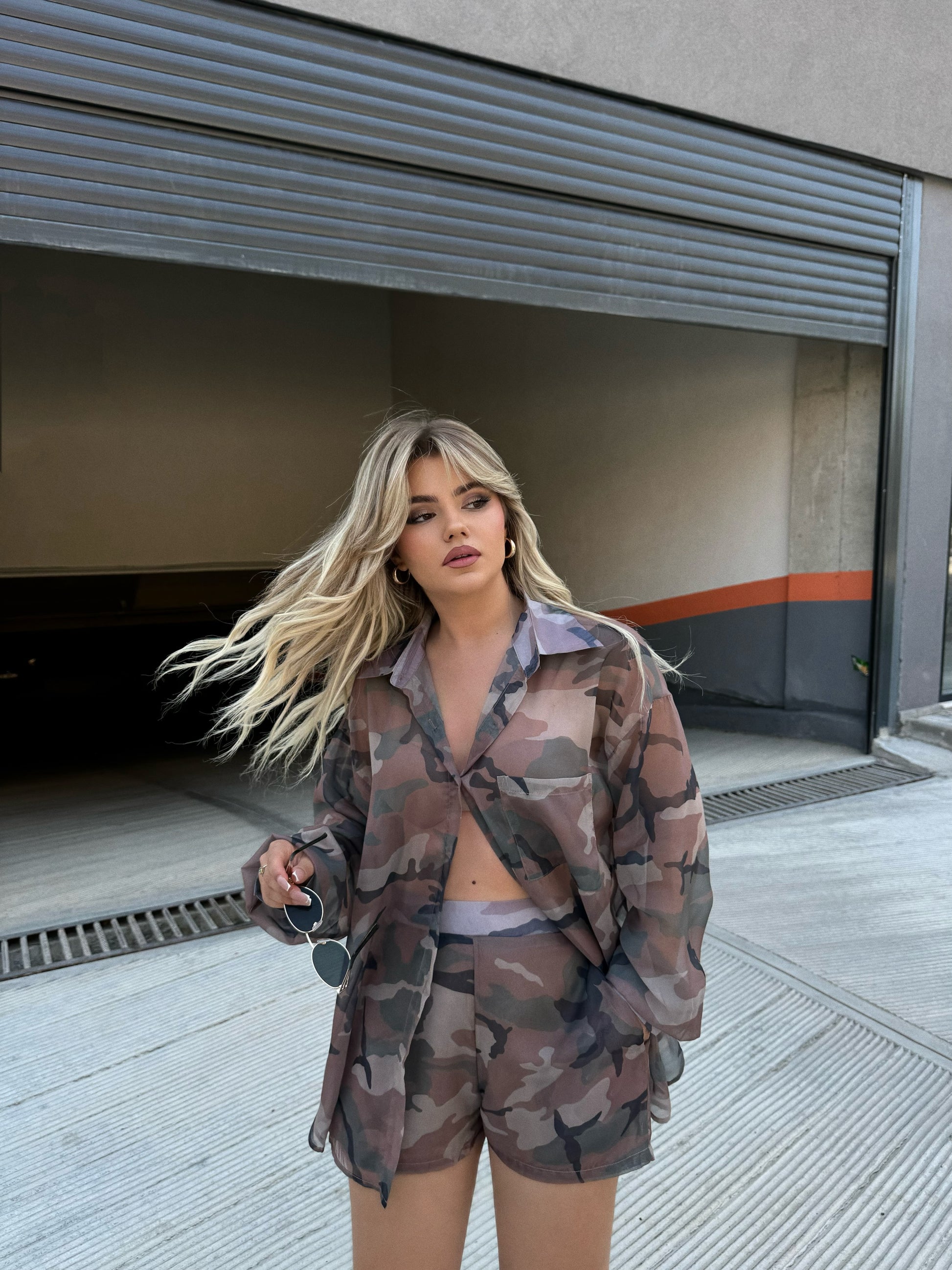 Set ushtarak me kemishe dhe pantallona te shkurtra. Eshte shume stil dhe i vecante. Material i plote dhe cilesi fantastike.
