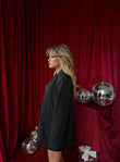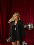 Set elegant që përfshin xhaketë me kopsa në pjesën e përparme, e dekoruar me xixa, dhe fund të shkurtër gjithashtu me xixa. Shkëlqen bukur në dritë dhe është perfekt për festa, evente apo mbrëmje speciale