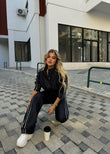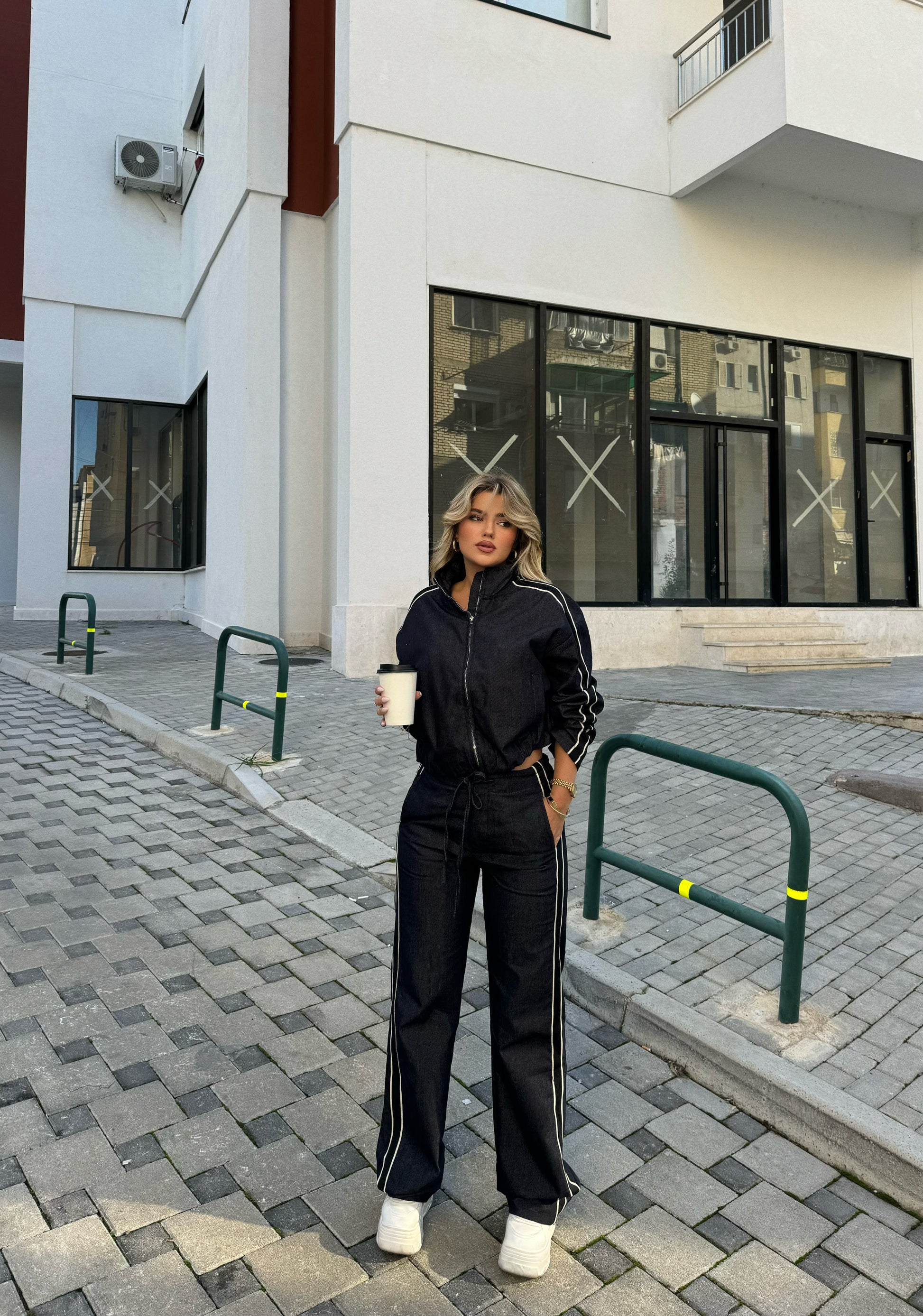 Set xhins vjen ne ngjyren blu te erret,eshte i perbere nga xhaketa dhe pantallona stil oversize. Materiali eshte i bute. Ideale per perditshmerin tuaj.