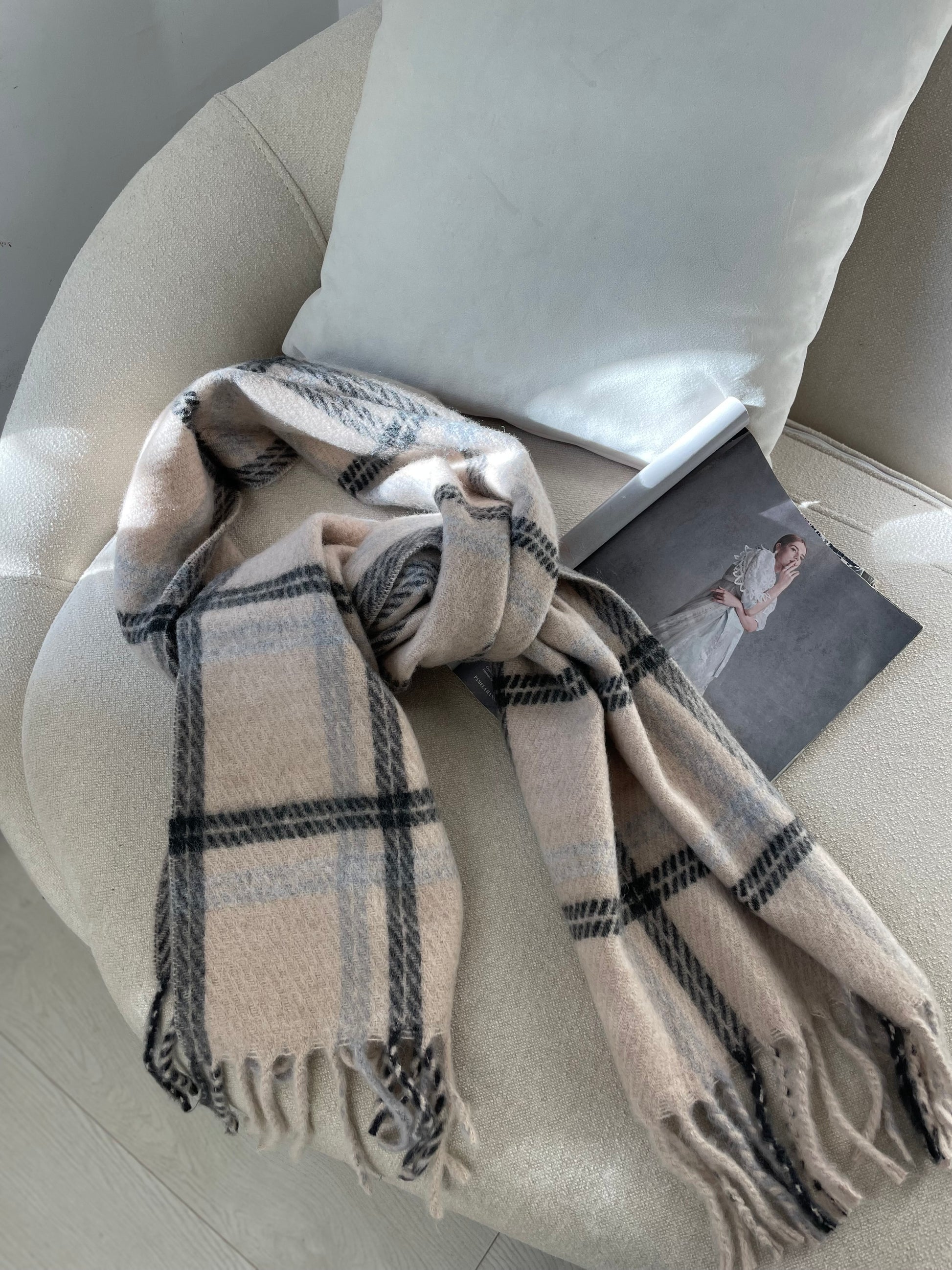 Shall ne ngjyren bezhe, vjen me nje dizajn te vecante me vija ne ngjyren kafe. Material i bute dhe i ngrohte,lehtesishte i kombinueshem.