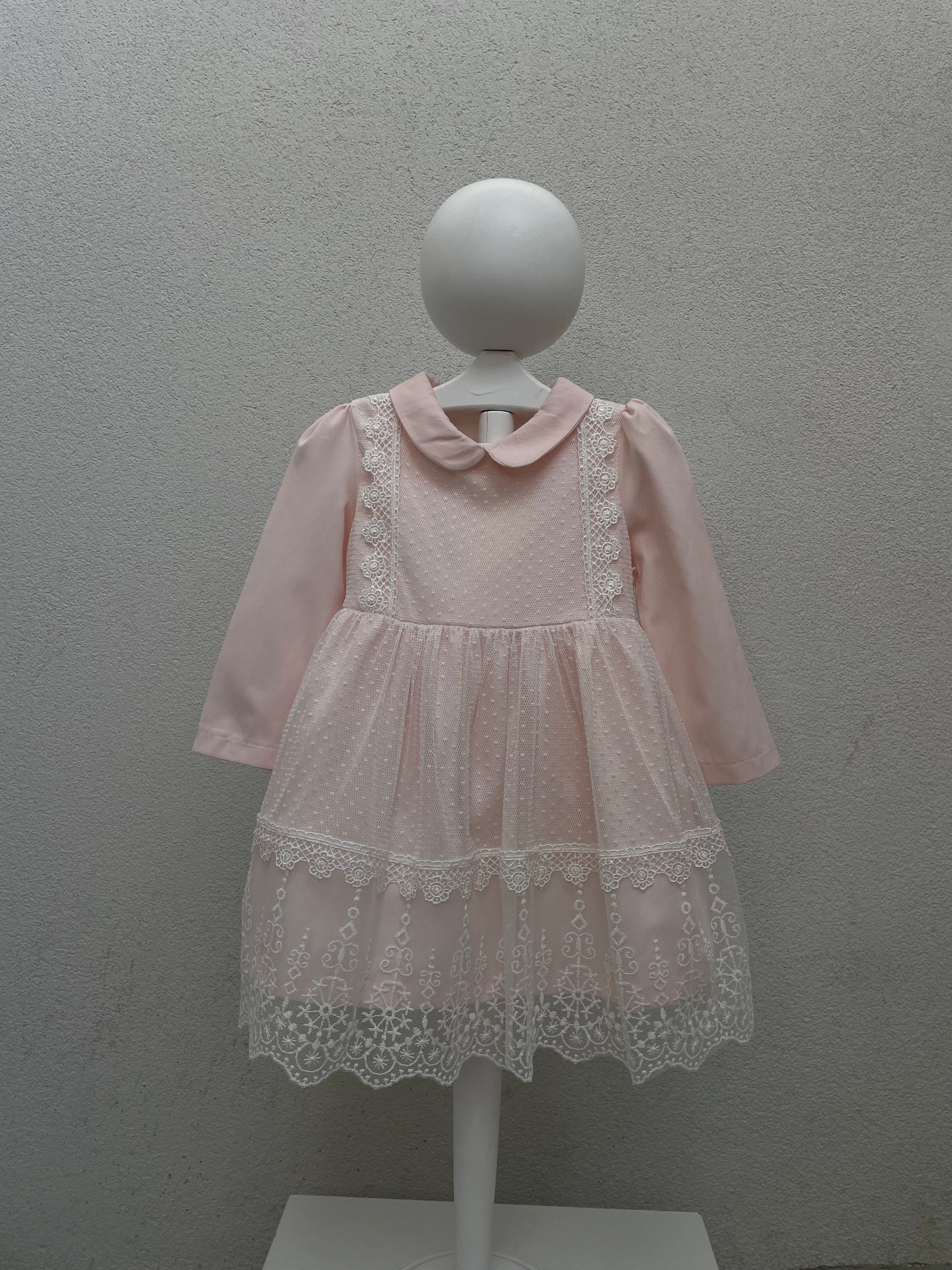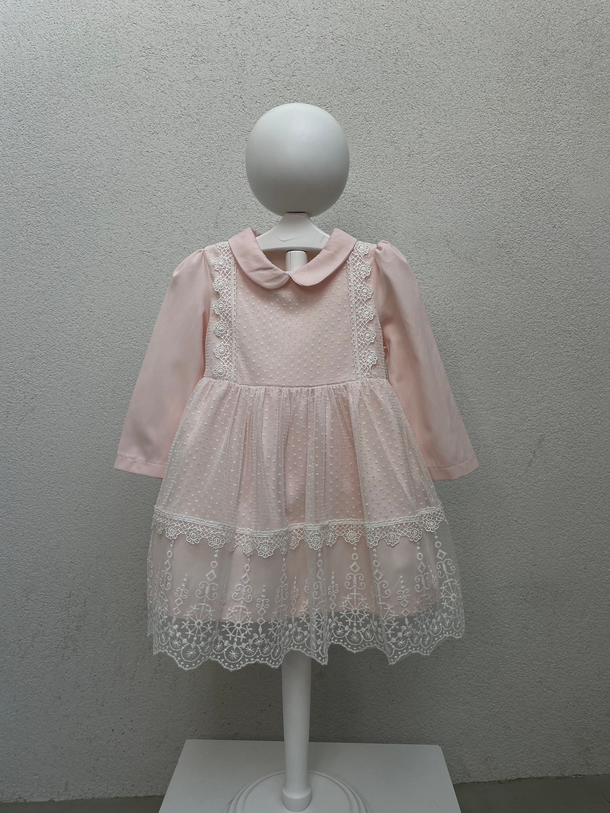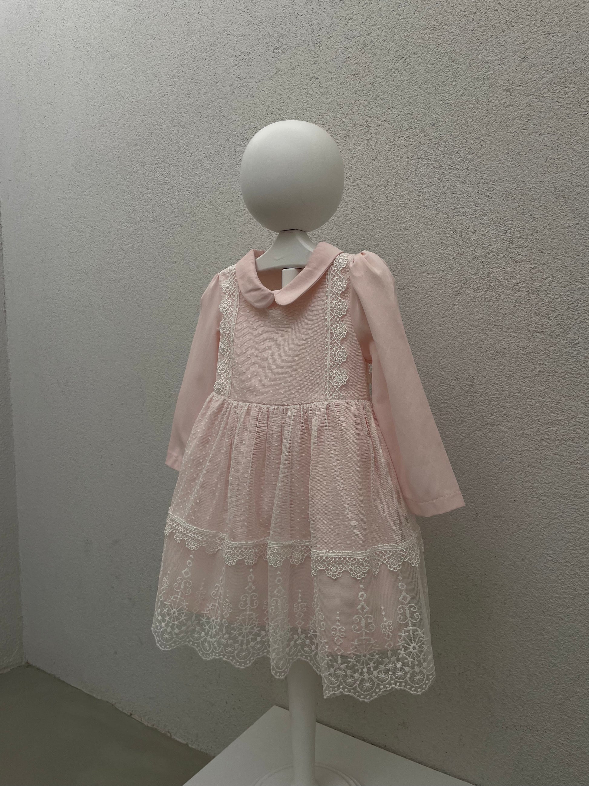 Fustan me krahe te gjate.Fustani ka jake katrore .Siper ka dantelle.Fustani ka material pambuk dhe cilesi fantastike.