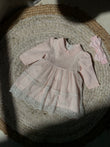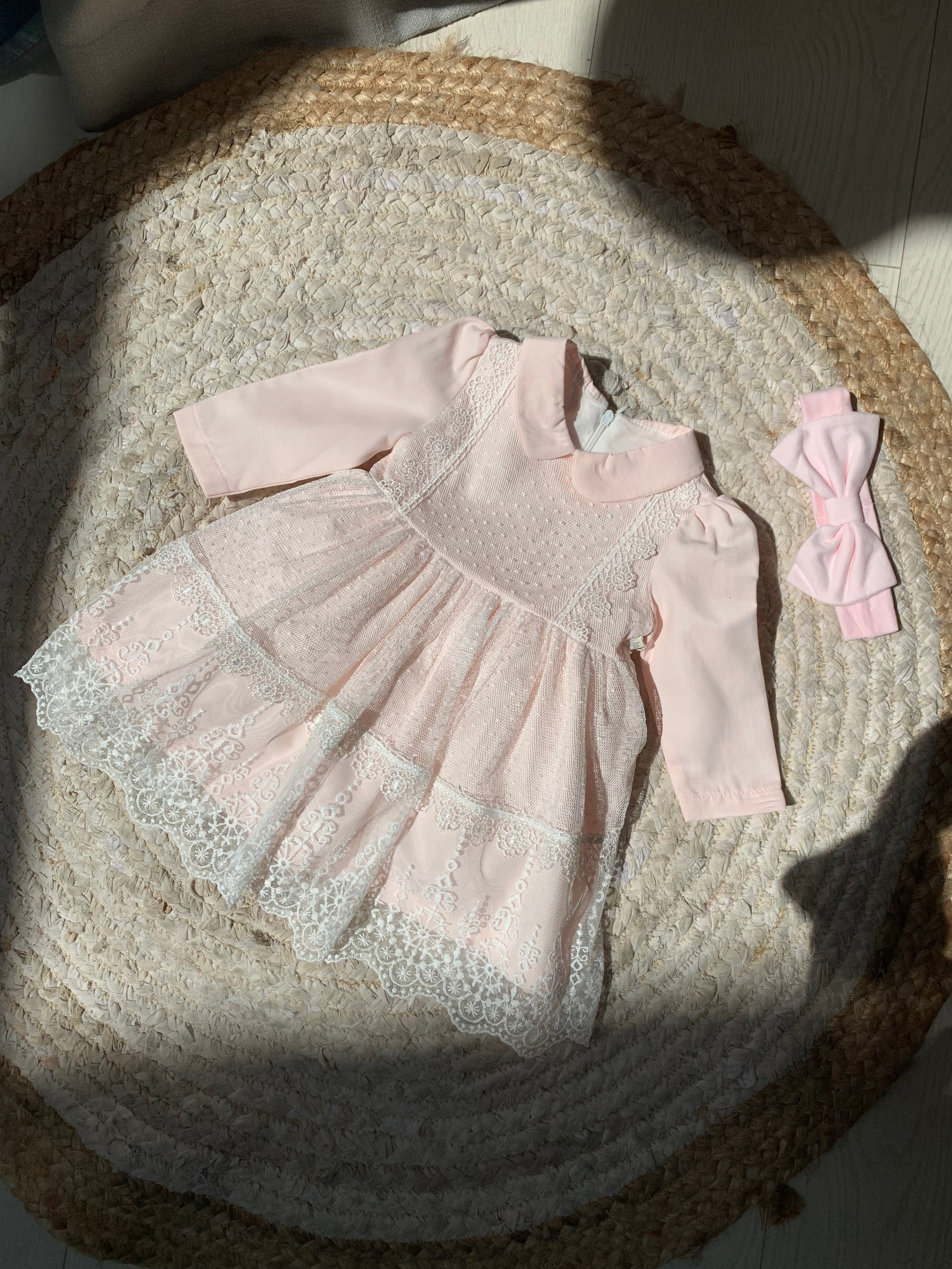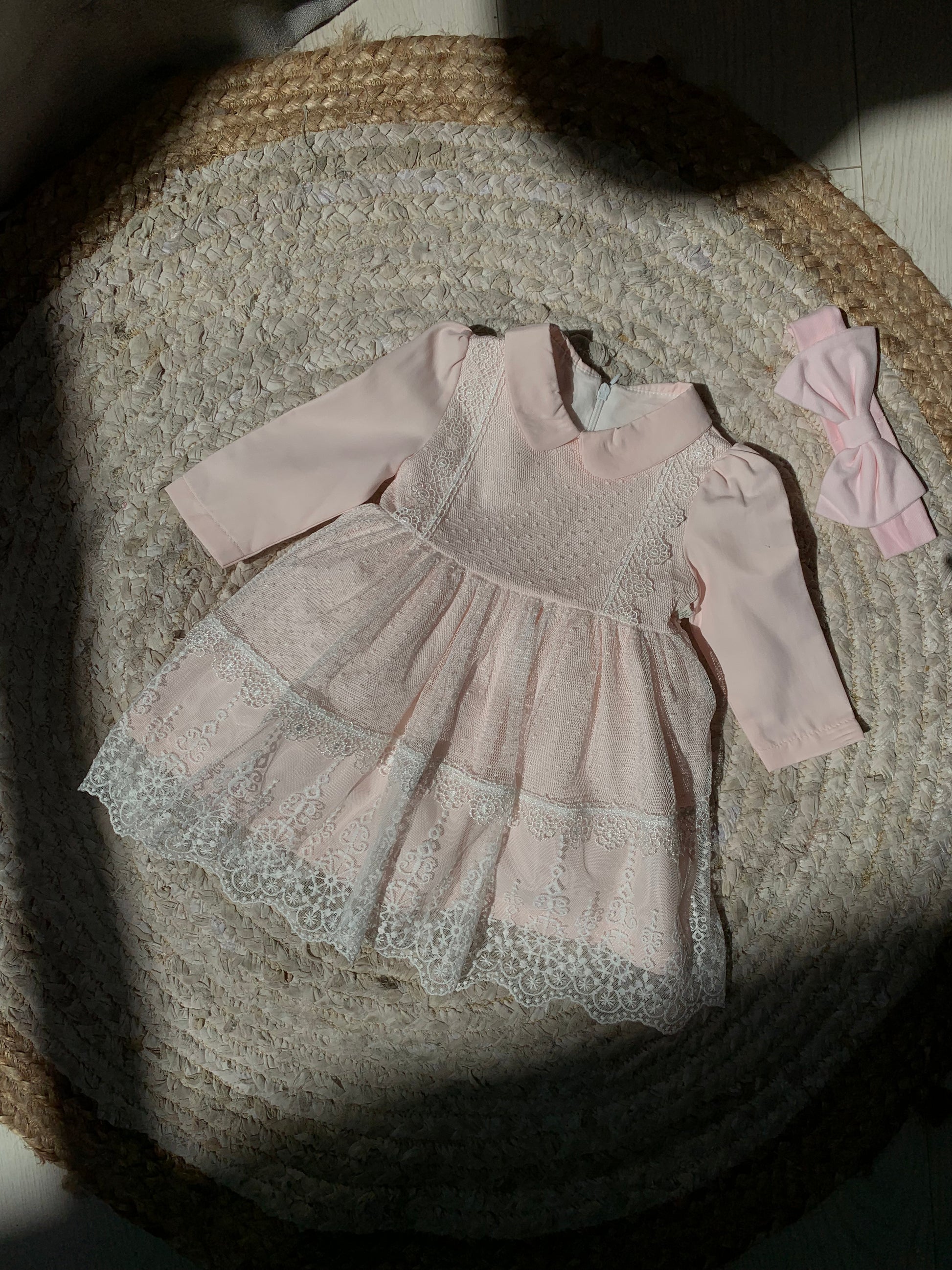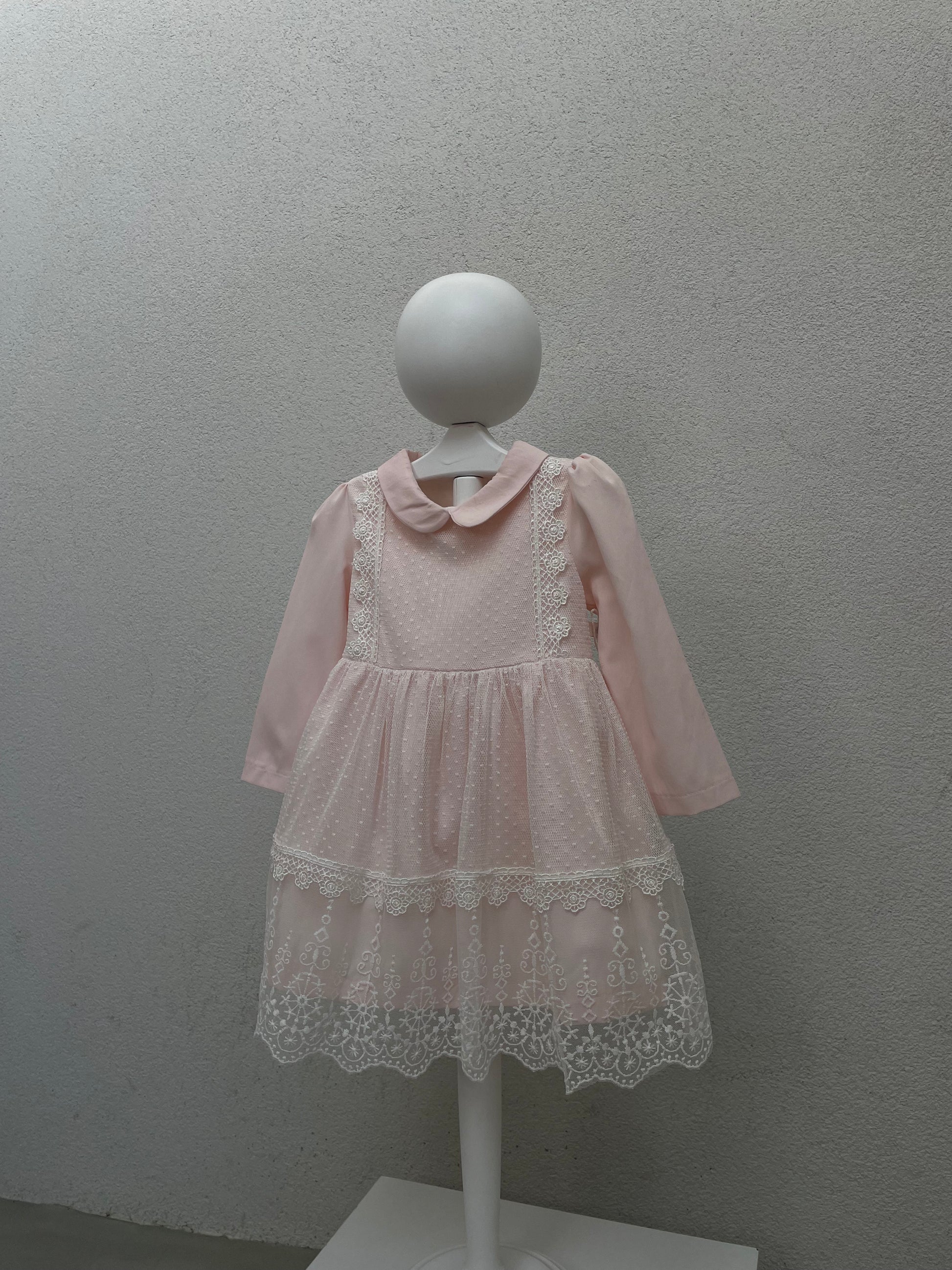Fustan me krahe te gjate.Fustani ka jake katrore .Siper ka dantelle.Fustani ka material pambuk dhe cilesi fantastike.