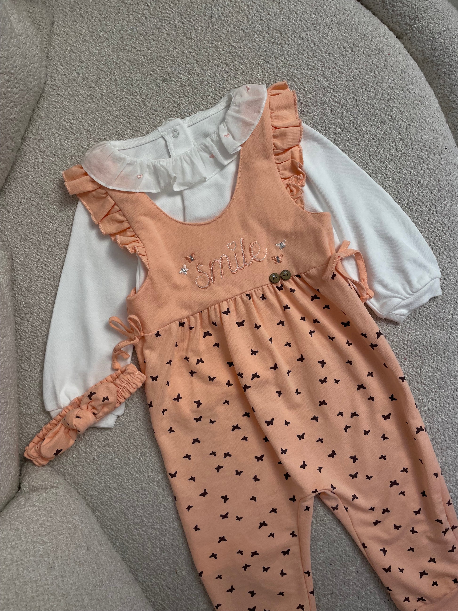 Paliceta me krahe te gjate dhe kordele per floket. Vjen me shkrim para dhe flutura ne pjesen e poshtme. Ka material te plote dhe cilesi fantastike .