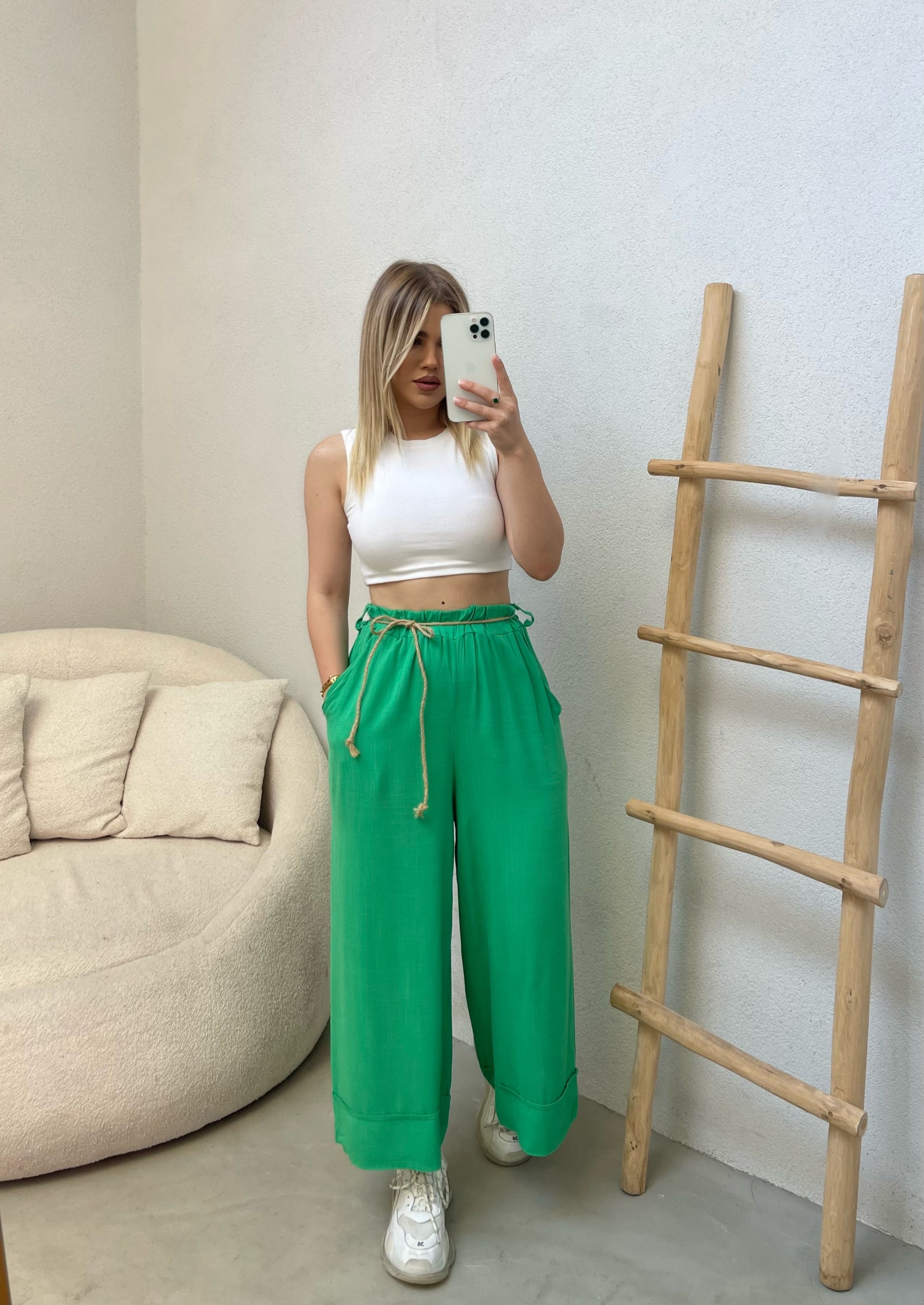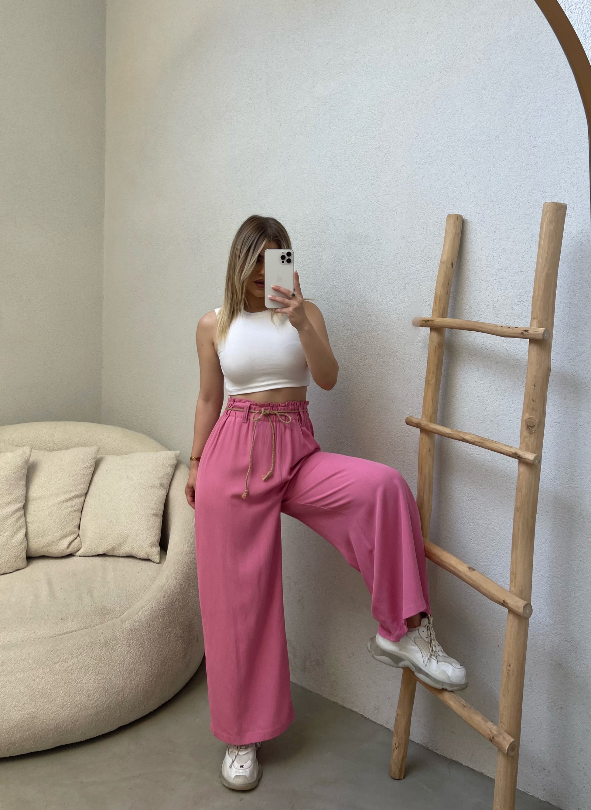 Pantallona te gjate me rrip ne bel. Kane material te plote dhe cilesi fantastike. Kombinohen lehtesisht me cdo veshje.