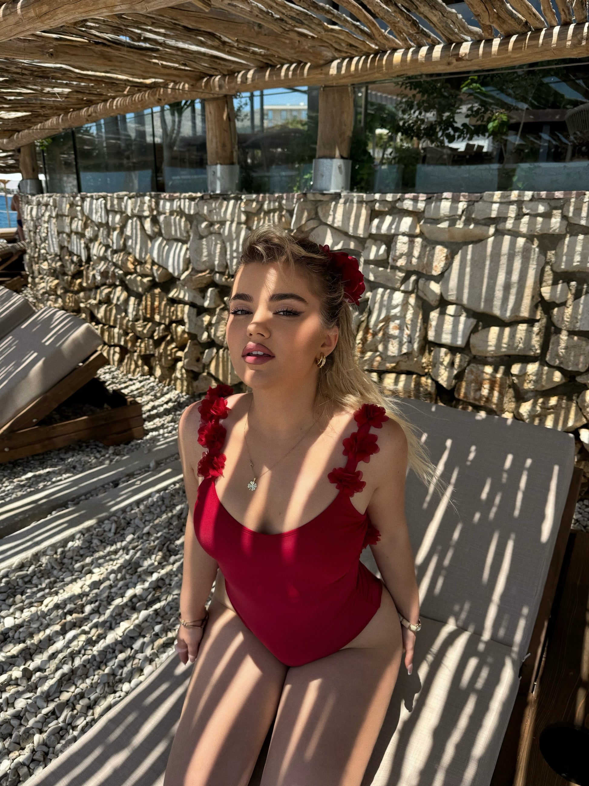 Trupore plazhi me detaje me lule. Jane me shpinen e hapur dhe ka dy ngjyra:vishnje dhe roze. Material i plote dhe cilesi fantastike.
