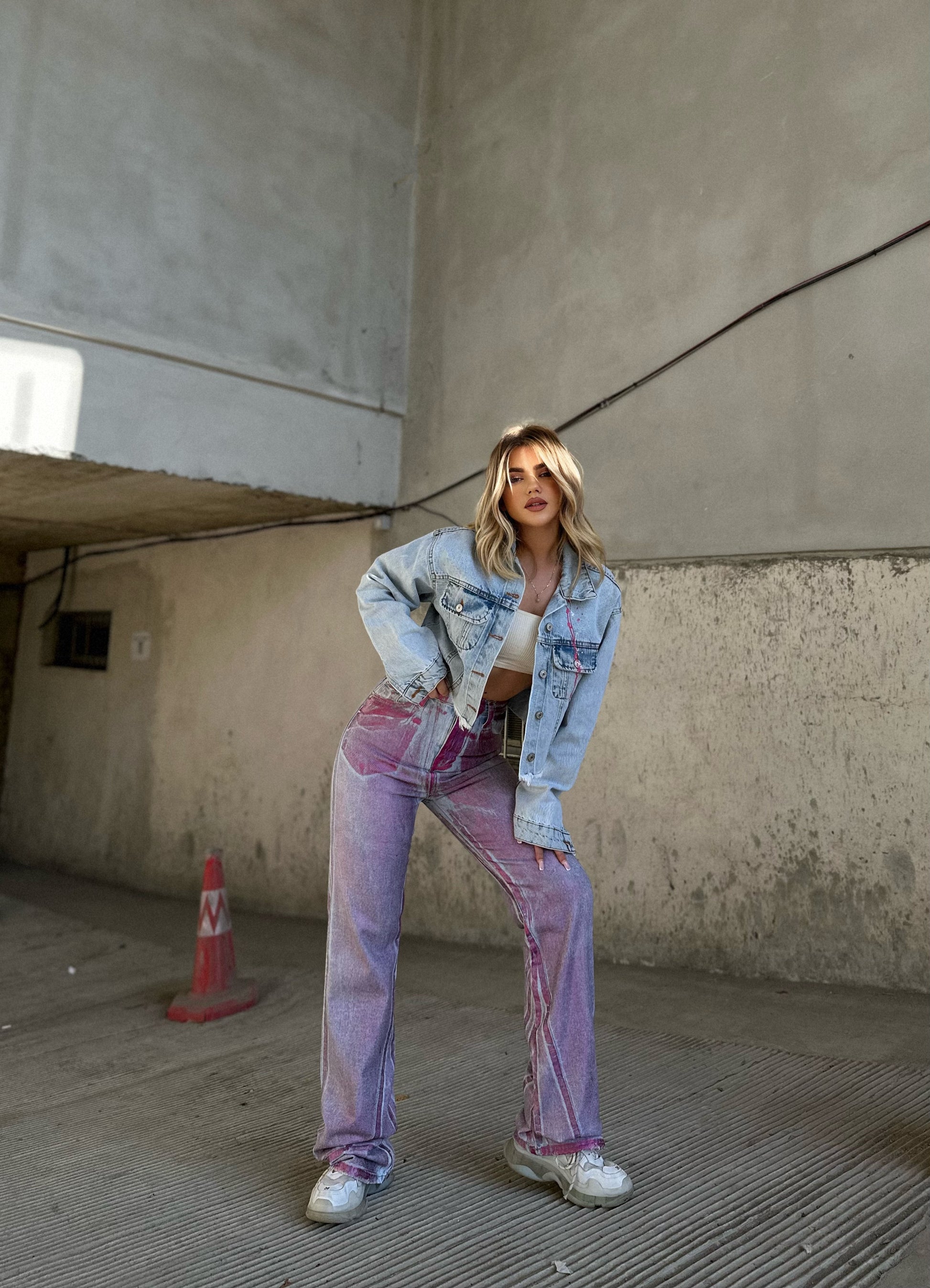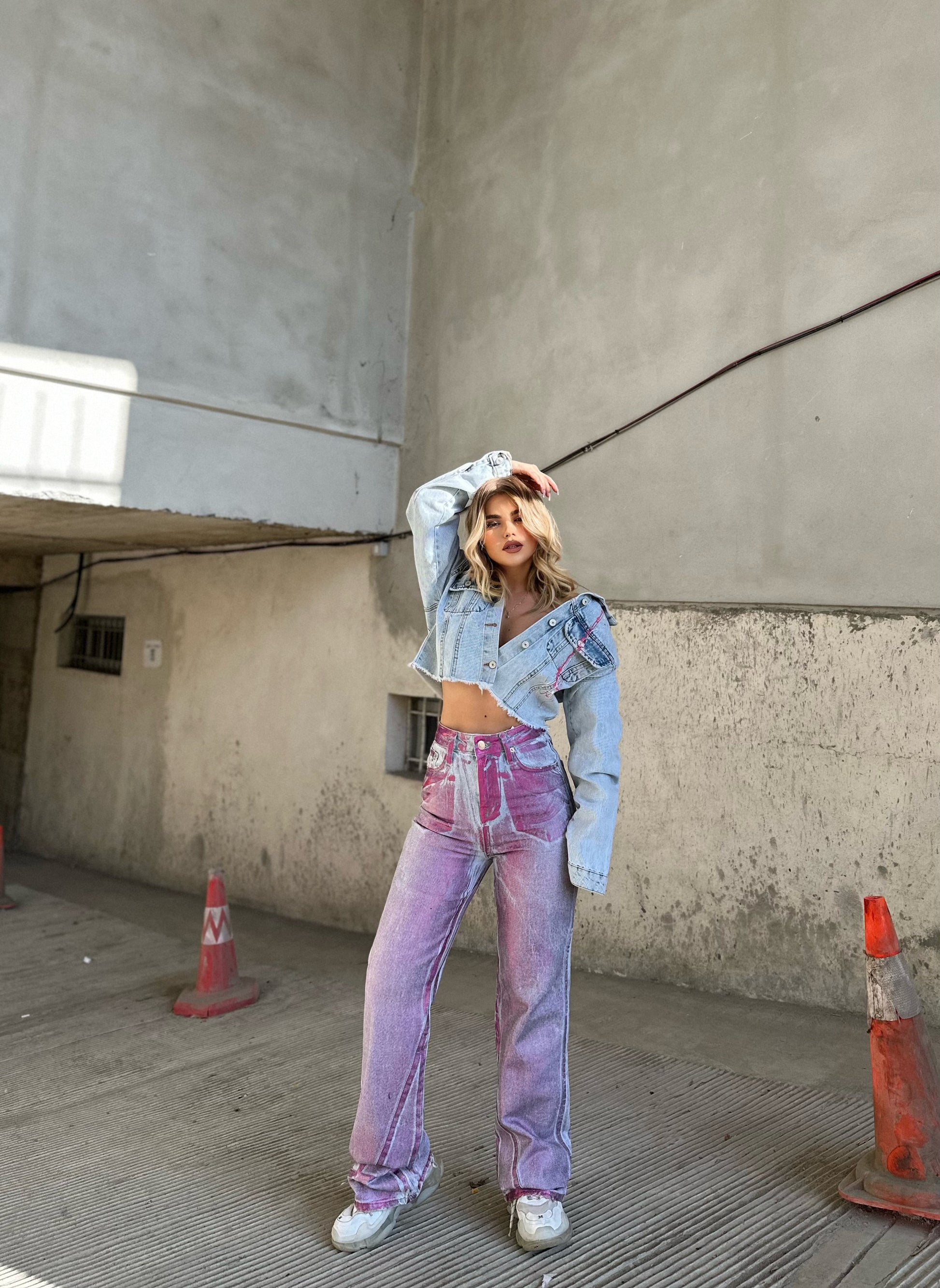 Xhakete xhins me barbie ne pjesen e pasme. Xhaketa eshte e shkurter. Ka material te plote dhe kombinohet lehtesisht me cdo veshje.