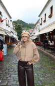 Xhakete e shkurter ne ngjyre bezhe, me zinxhir perpara, menge te fryra dhe xhepa te medhenj. Still modern dhe i lehte per kombinime te perditshme.