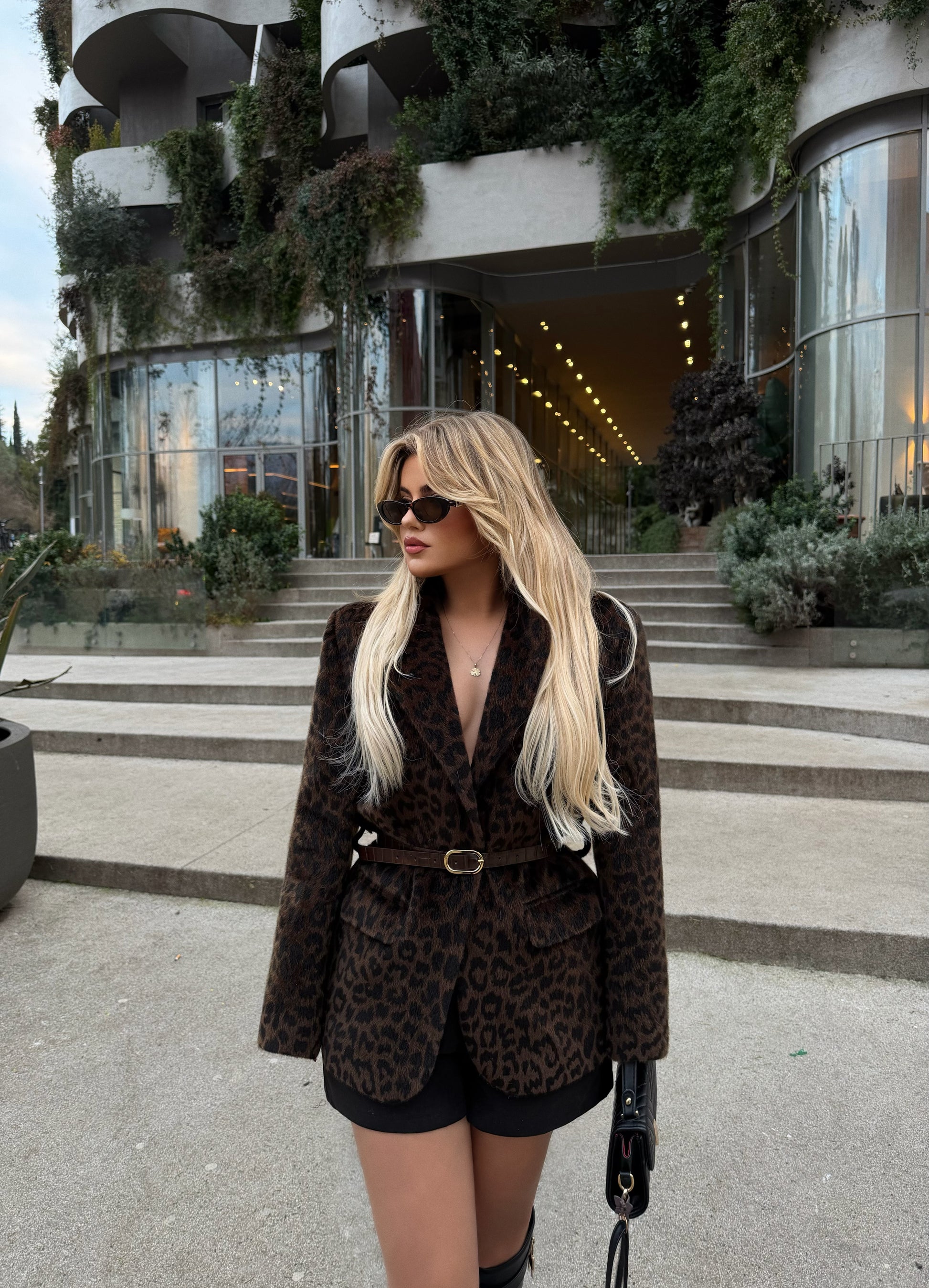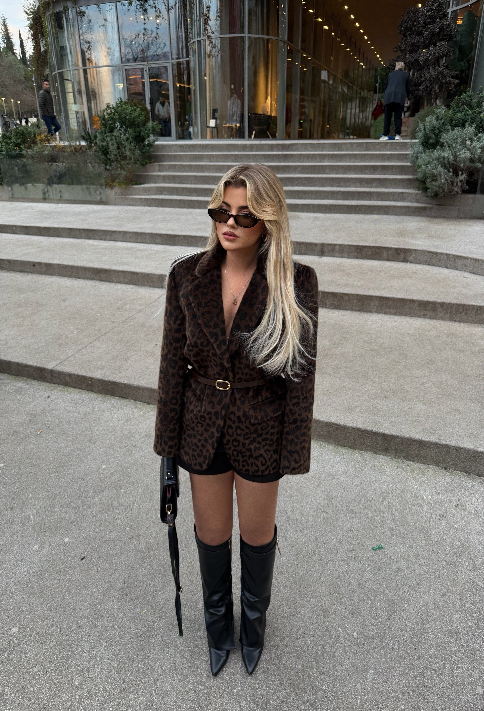 Xhakete ne ngjyren kafe leopard, vjen e shoqeruar me rripin ne bel, material plote dhe i bute. Teper stil dhe elegante.