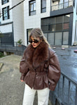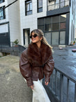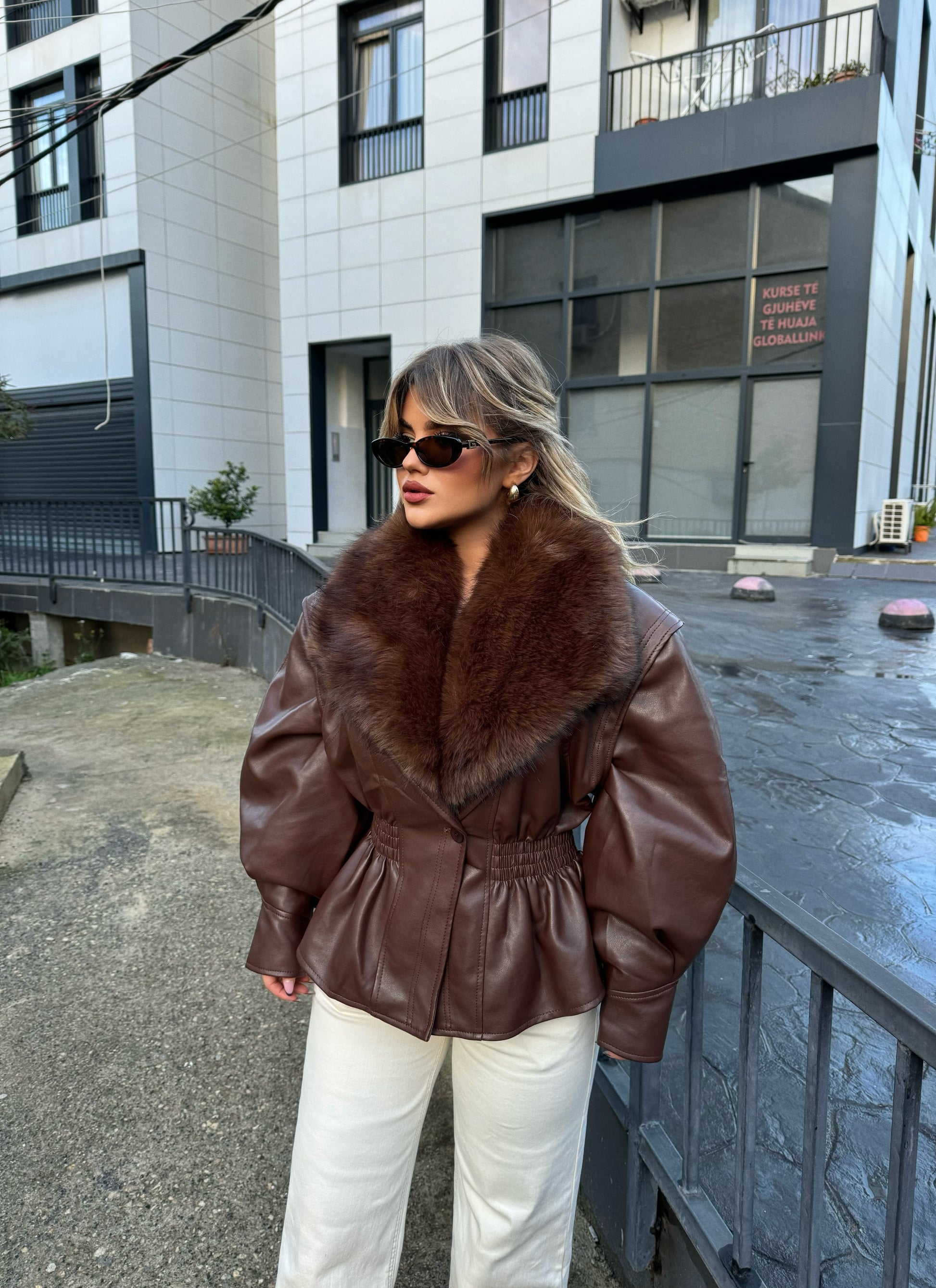 Xhakete lekure me pellush brenda ne ngjyren vishnje dhe kafe. Vjen me llastik ne bel , thekson mjaft bukur trupin dhe mbyllet me kopse. Teper e ngrohte dhe perfekte per perditshmeri.