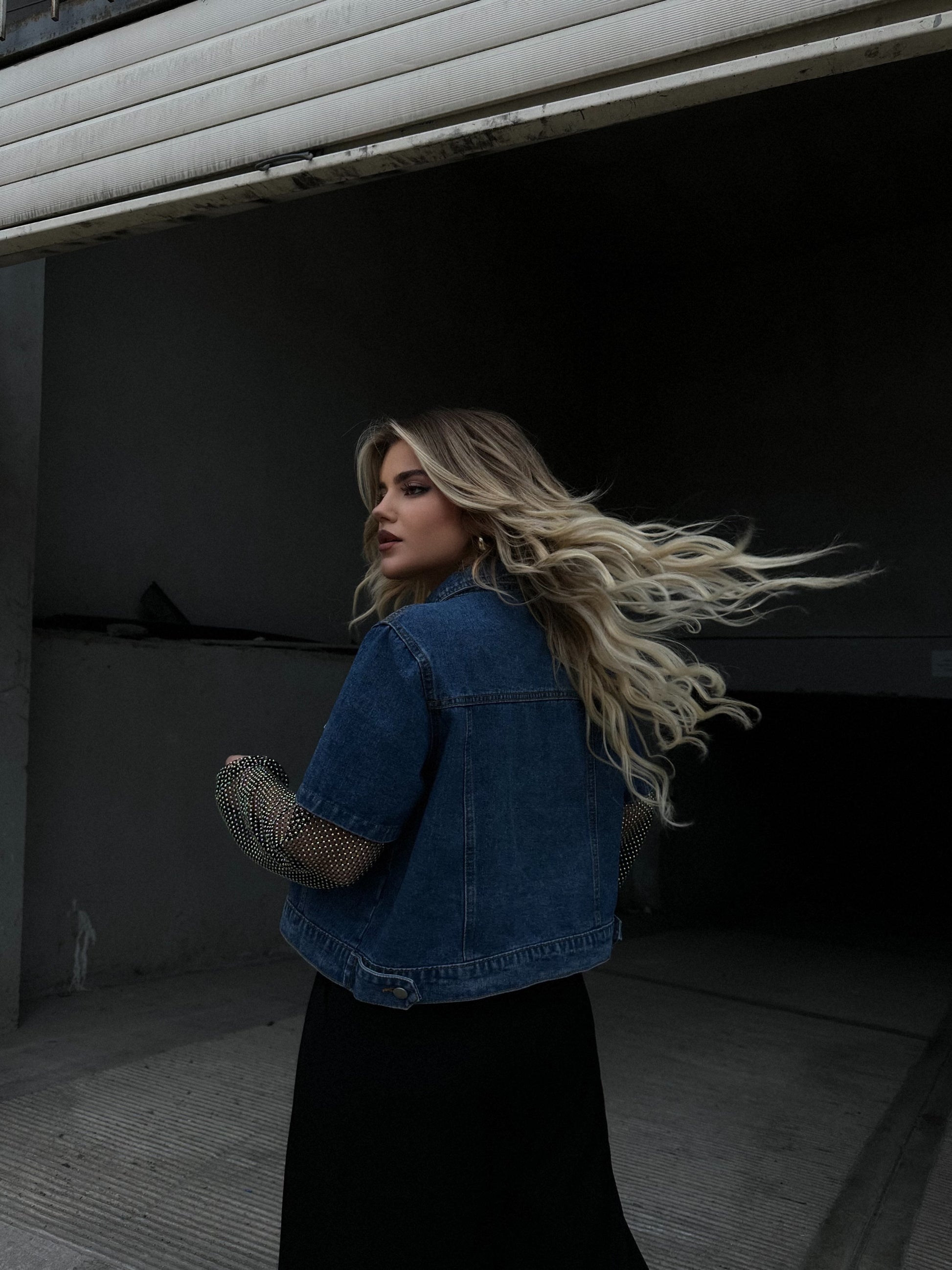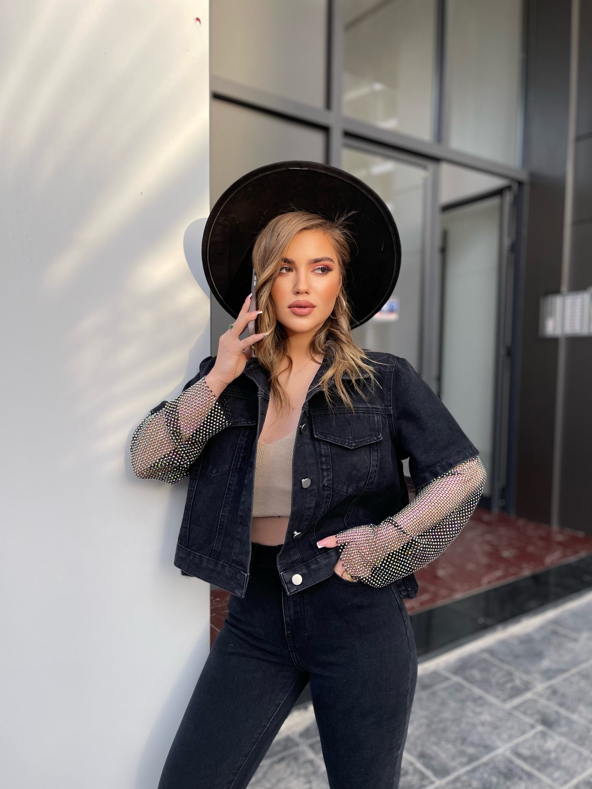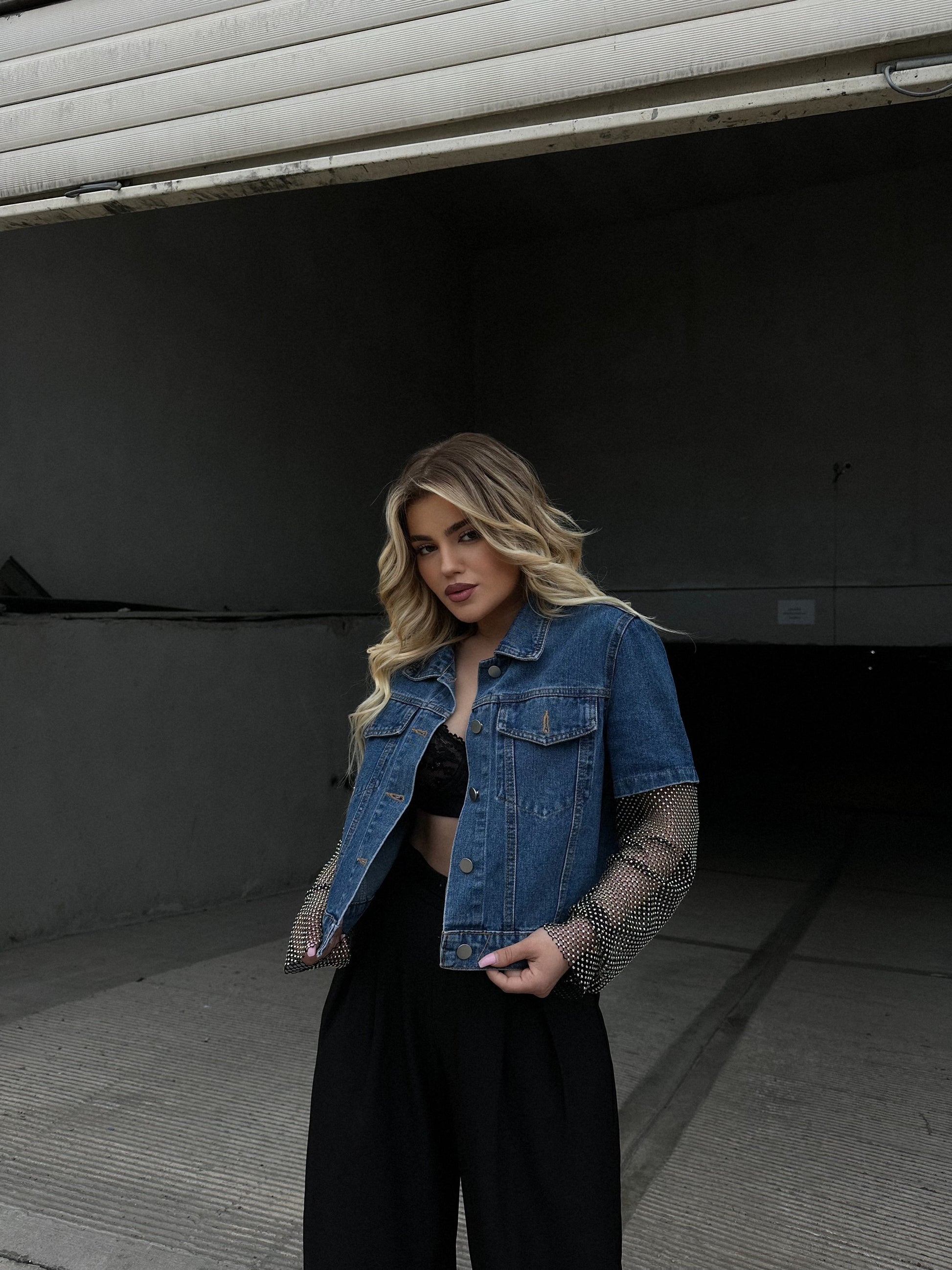 Xhaket me menge rrjet me gure. Mberthimi behet me kopsa ne pjesen e perparme. Xhaketa eshte me jake me kapak dhe xhepa te bollshem. Modeli vjen ne dy ngjyra: e zeze, blu.