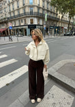 Xhinse me bel te larte, ngjyre kafe e erret, prerje te drejte e te gjere,ideale per nje stil modern dhe komod.