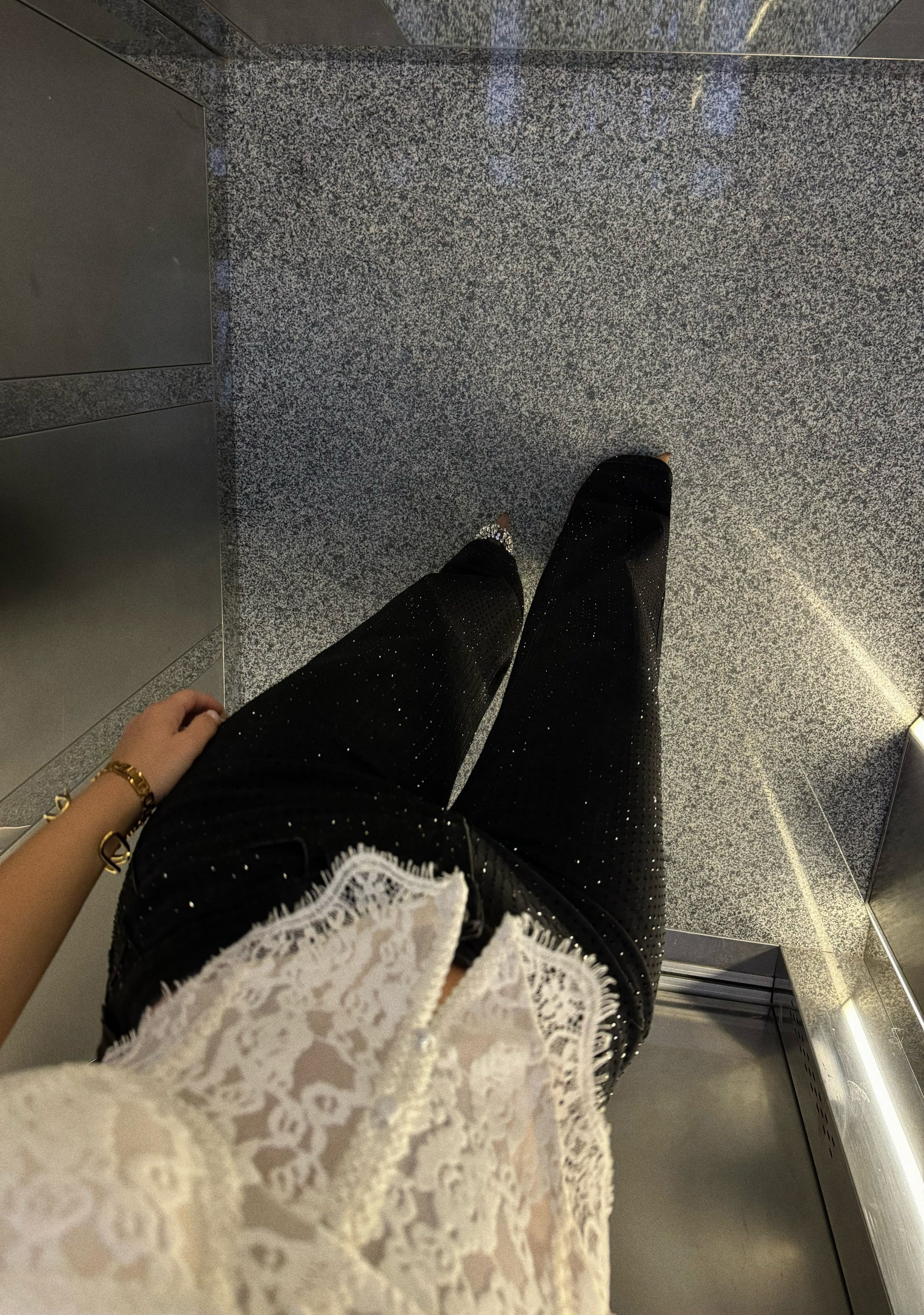Xhinse te gjata ne ngjyren e zeze me detaje me gure. Jane super stil dhe komode. Material i plote dhe cilesi fantastike.
