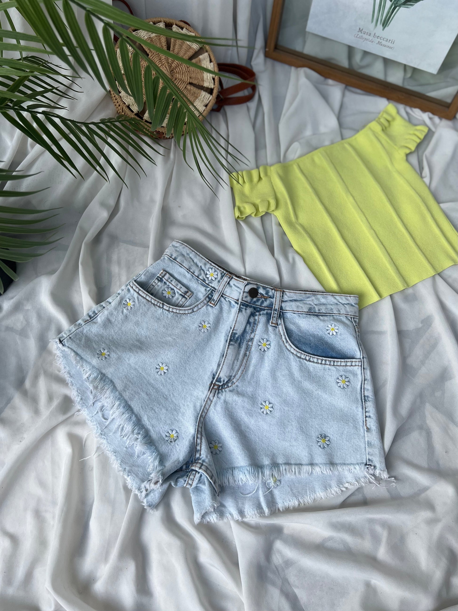Xhinse te shkurtra me lule dele. Ne fund jane me theke. Me bel te larte. Cilesi shume e mire.