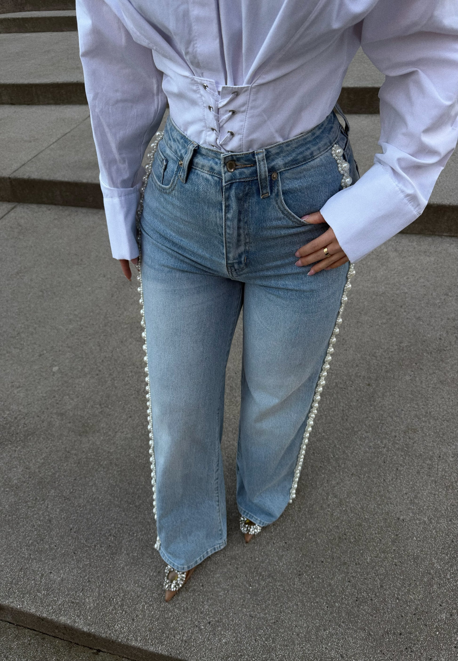 Xhinse ne ngjyre bojeqielli me detaje perlash anash te rehatshme, me stil dhe me nje prekje delikate.
