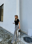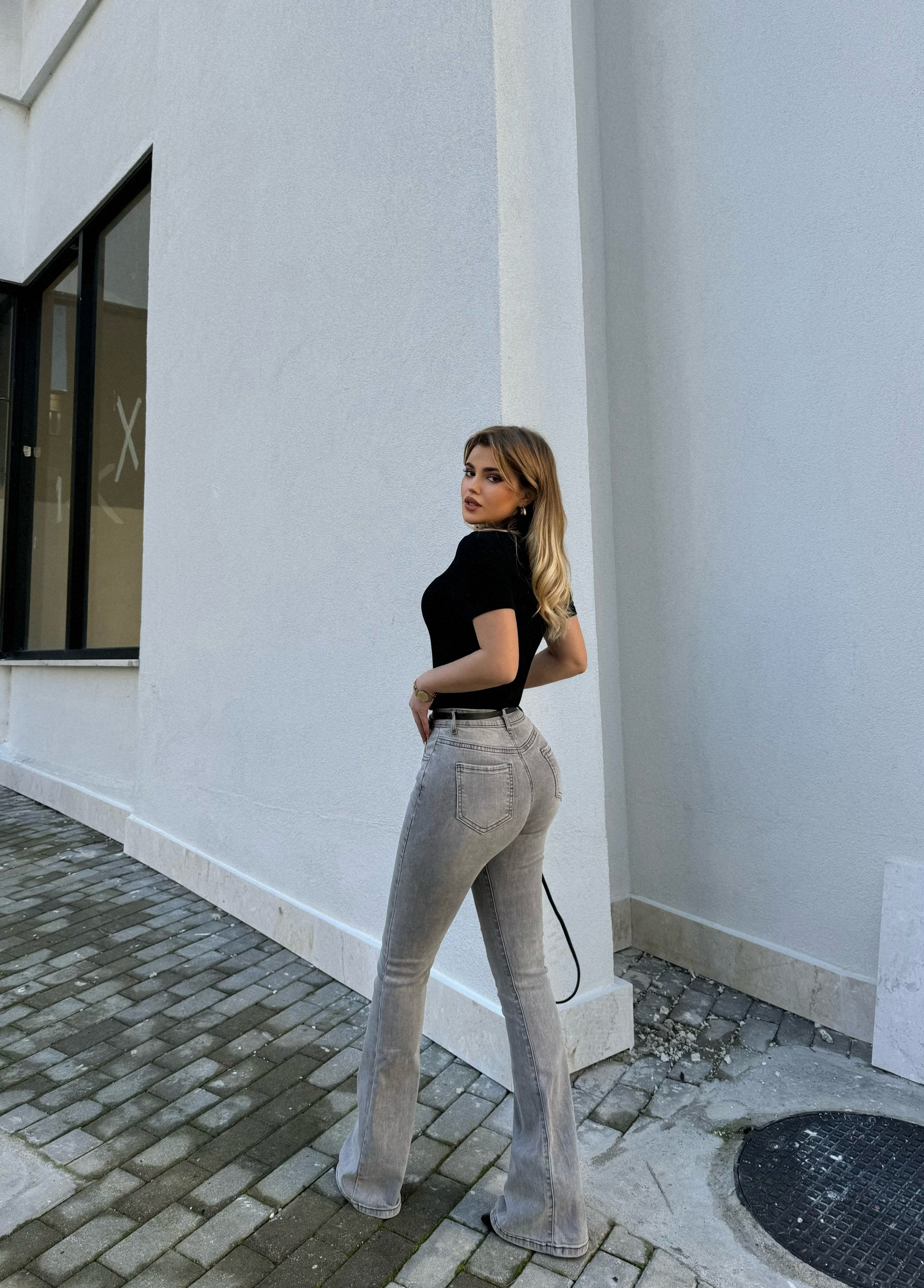 Xhinse eleastike, cowboy. Material qe pershtatet pas trupit. Rripi eshte i perfshire.