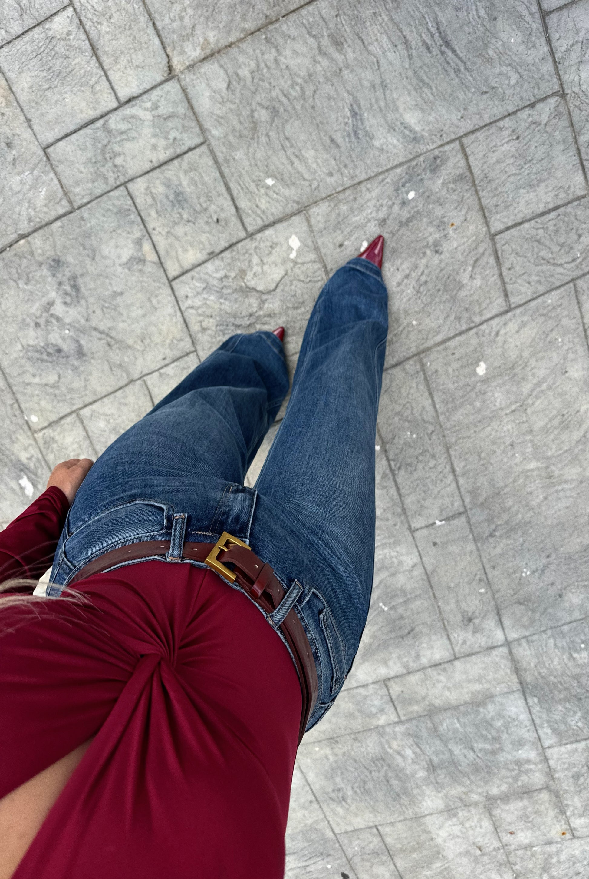 Xhinse te gjera me rrip vishnje. Material elastik qe rri perfekt ne trup.