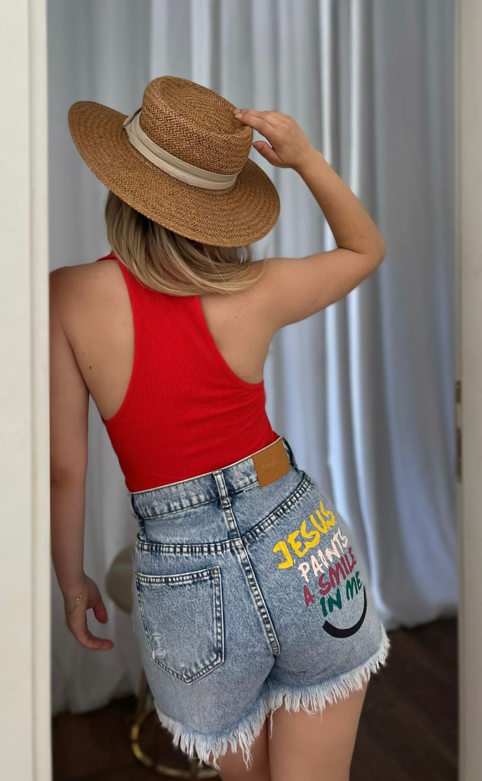 Xhinse te shkurtra me me shkrim mbrapa. Ne pjesen e perparme jane te grisura. Kane xhepa te bollshem. Mberthimi behet me kops dhe zinxhire ne pjesen e perparme.
