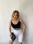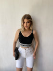 Pantallona te shkurtra te bardha. Me fije ne pjesen fundore. Mberthimi behet me kops dhe zinxhir ne pjesen e perparme. Jane teper te rehatshme.