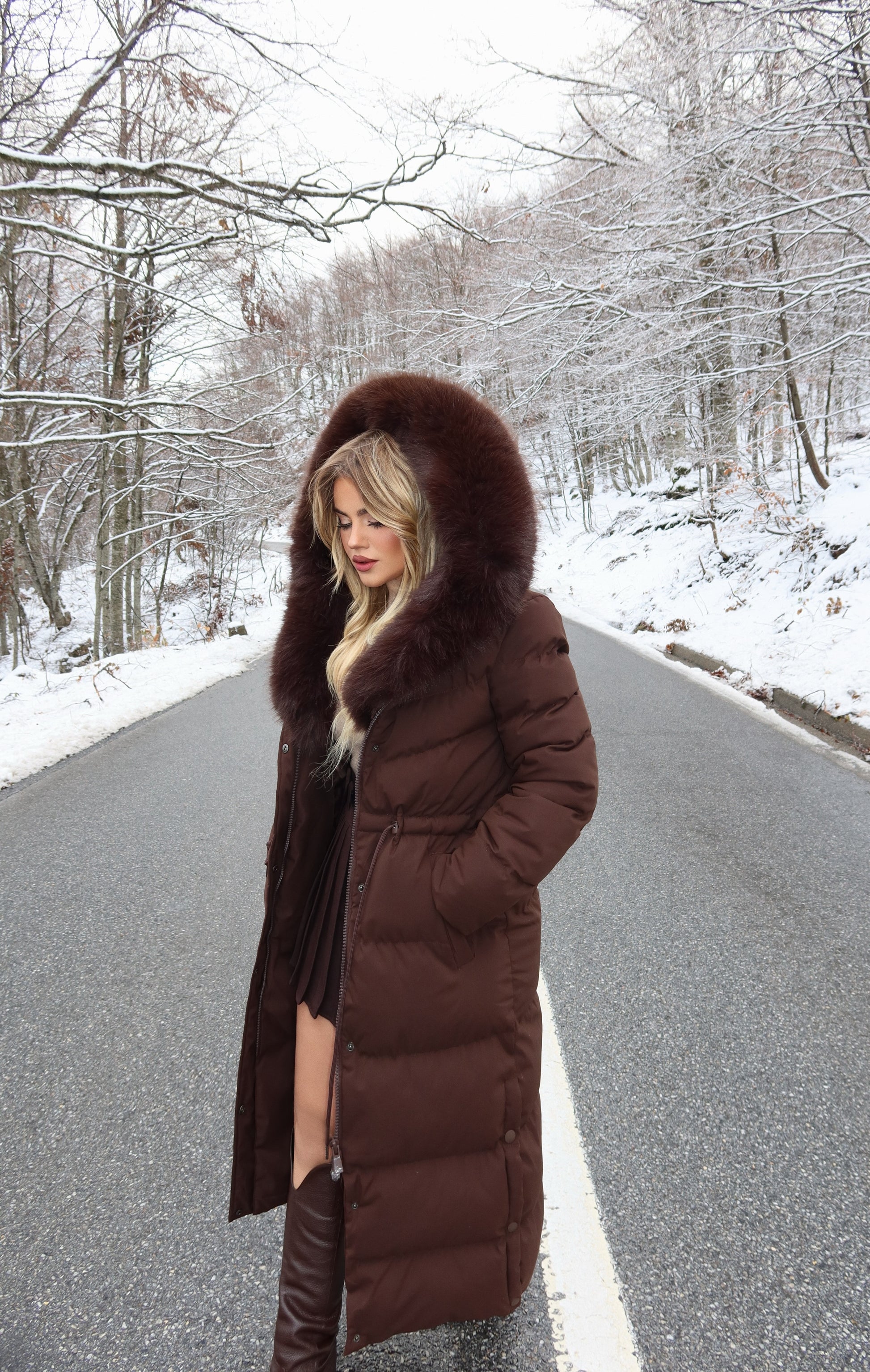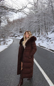 Xhup i gjate me pellush tek jaka. Vjen me lidhese tek beli. Ka kopsa ne fund tek pjeset anesore. Teper i ngrohte.