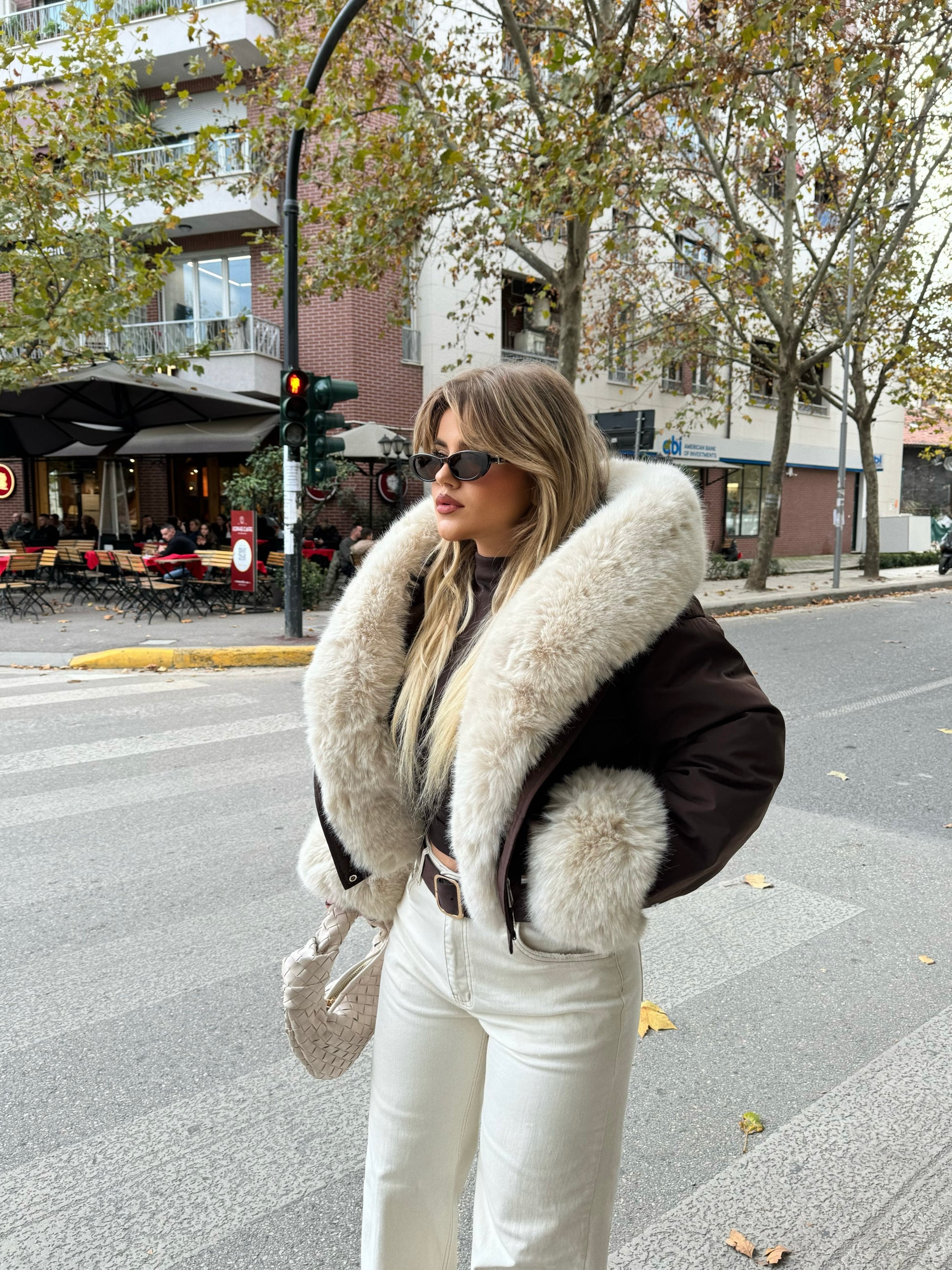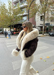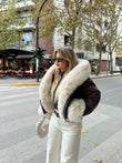 Xhup i shkurtër në ngjyrë kafe, i veshur me pellush bezhë që i jep butësi dhe ngrohtësi. I lehtë për t’u kombinuar dhe perfekt për ditët e ftohta me stil.