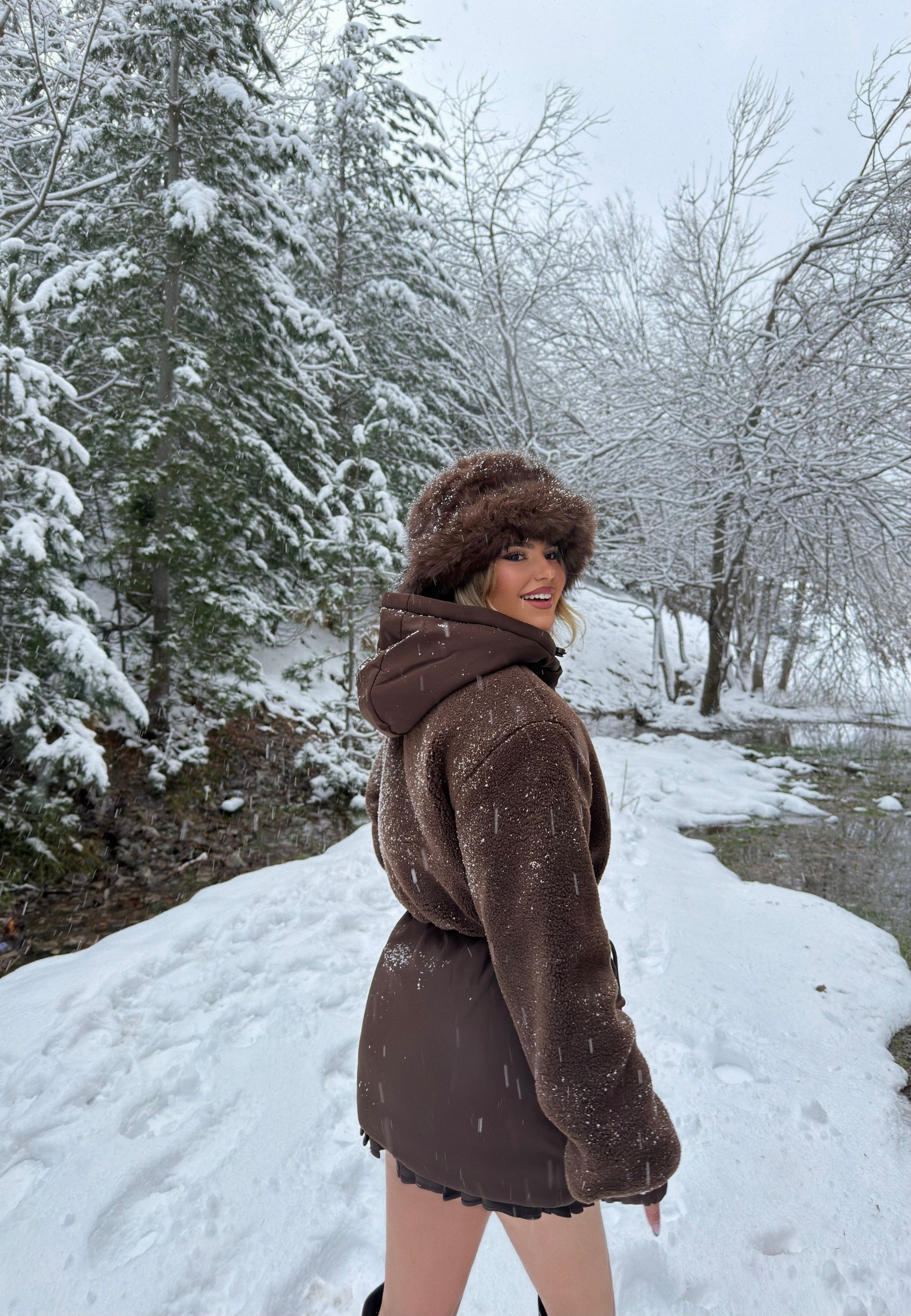 Xhup ne ngjyren kafe, xhupi eshte me zinxhire dhe kapuce. Ideale per ditet e ftohta te dimrit.