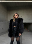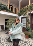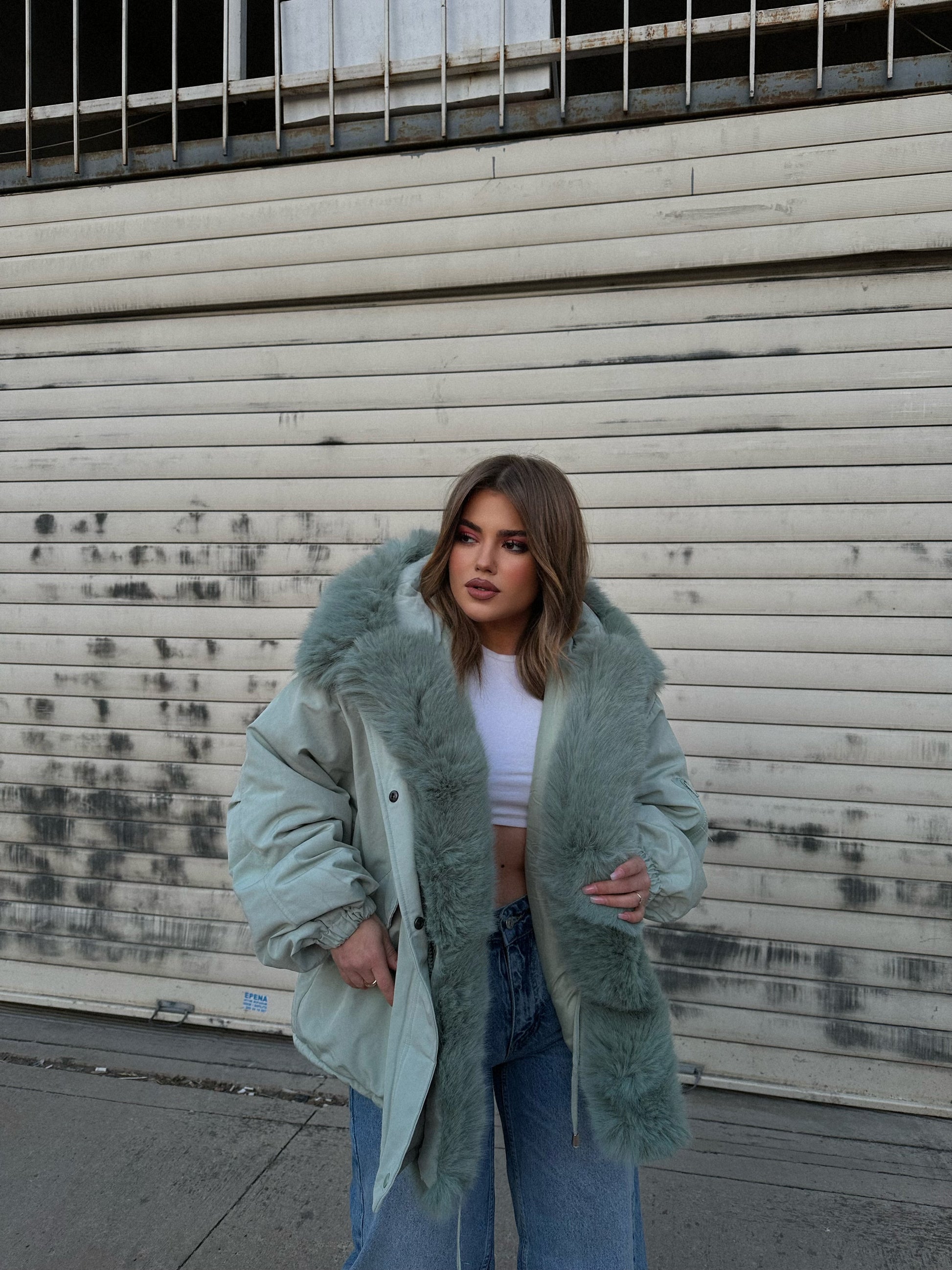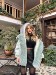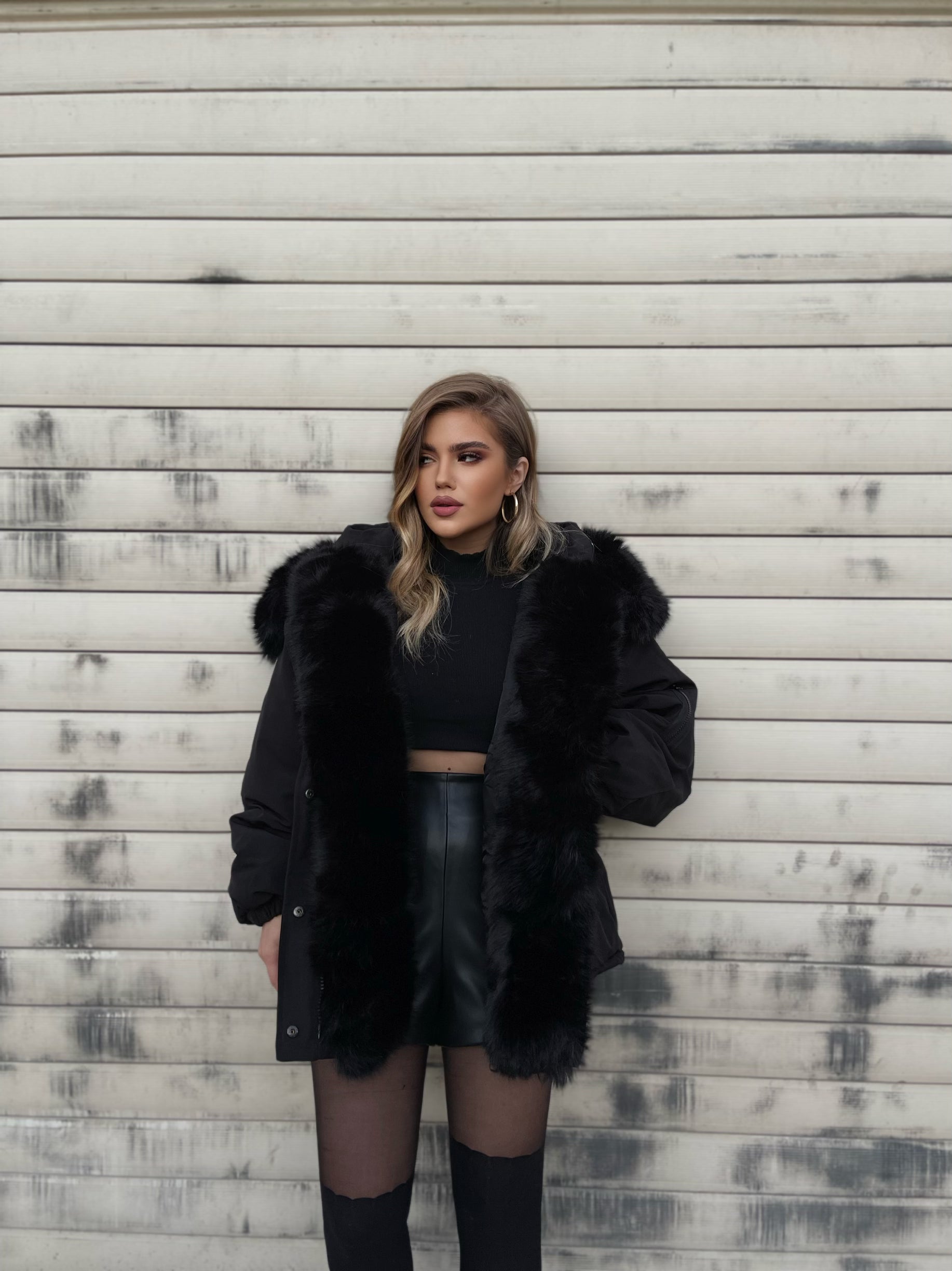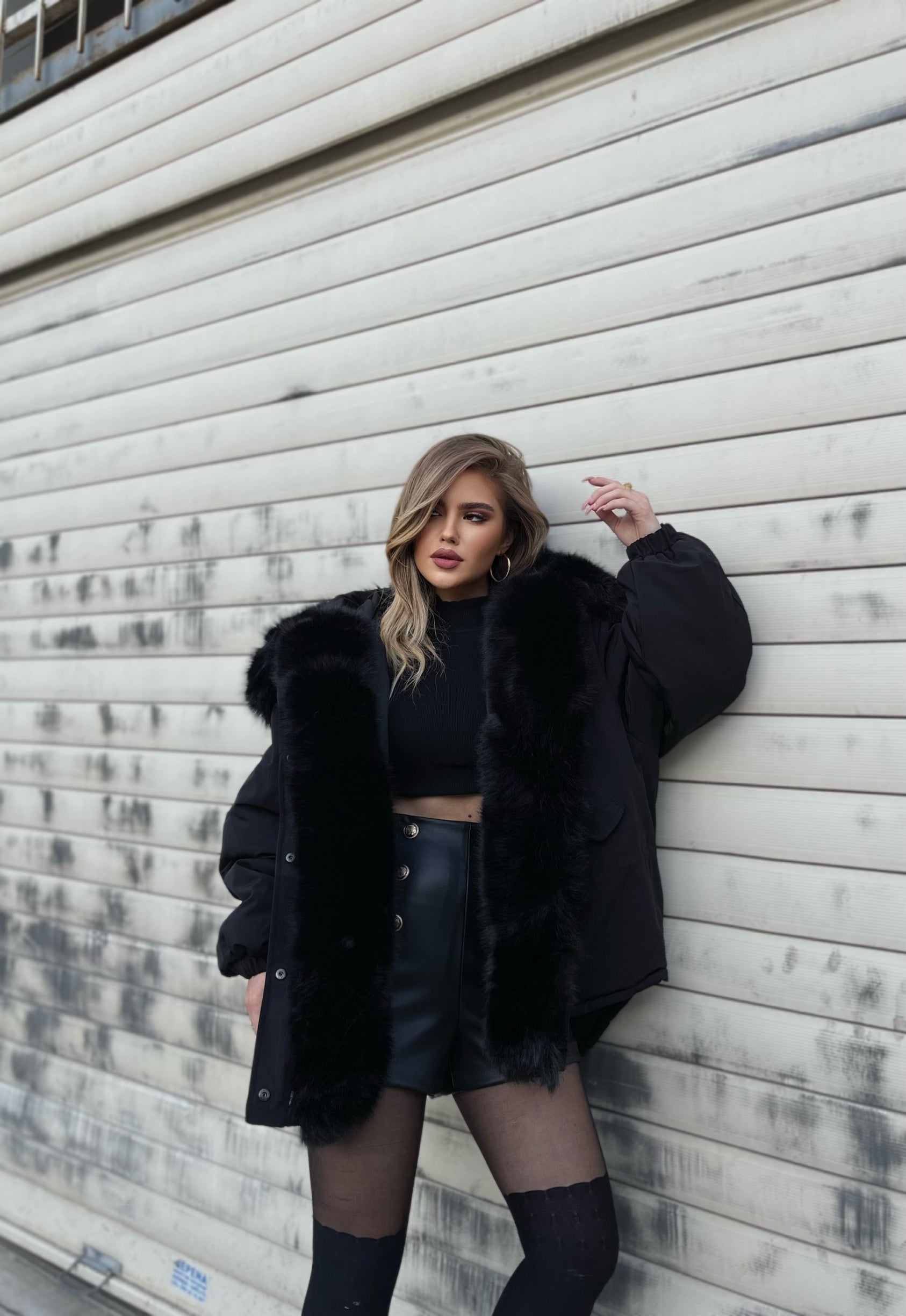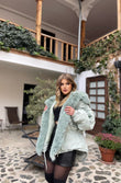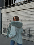 Xhup pellush me menge te gjata me llastik ne pjesen e mengeve. Me xhep ne pjesen e mengeve. Me llastik ne pjesen e belit. Mberthimi behet me zinxhir dhe precin te brendshme.