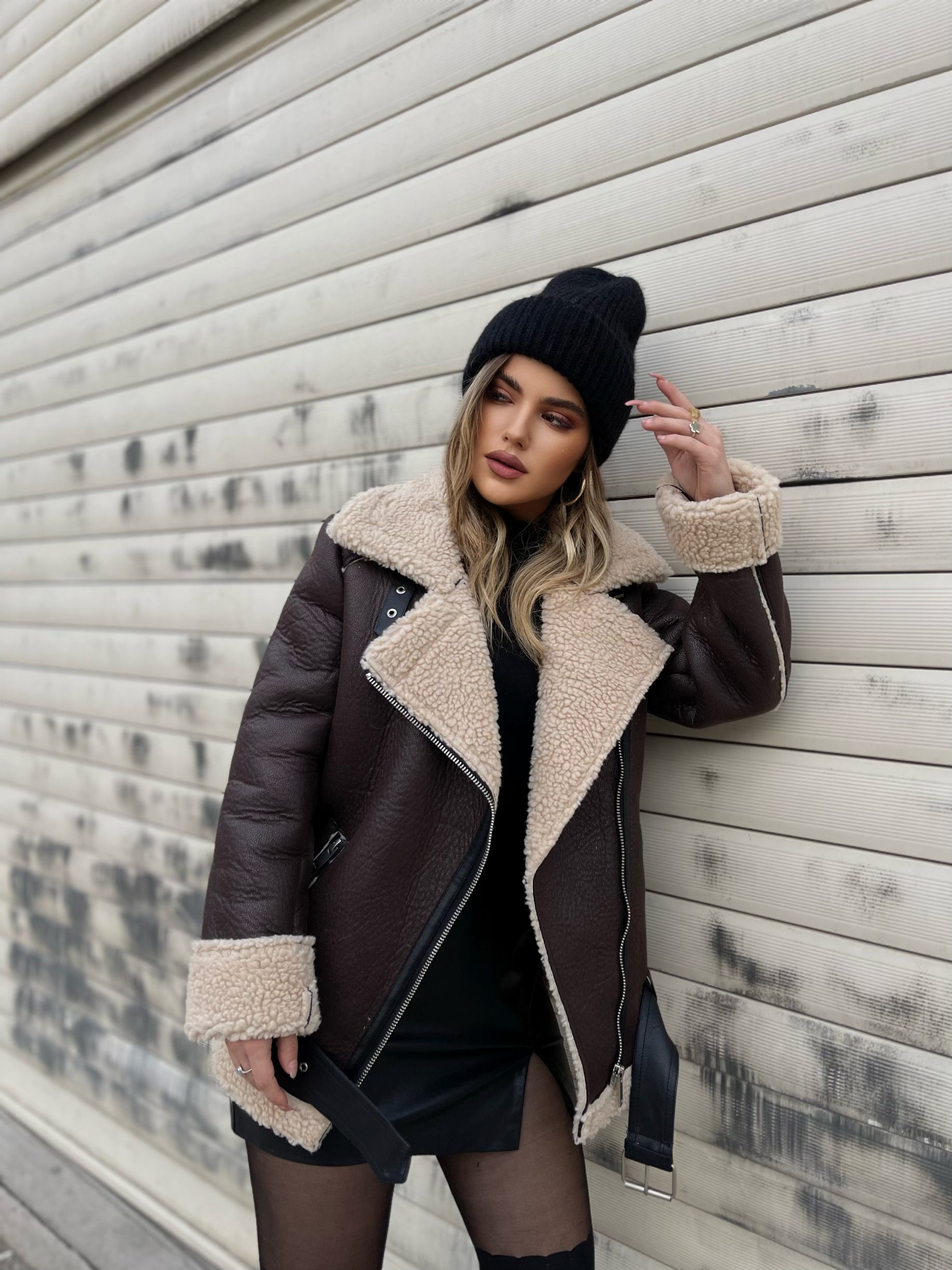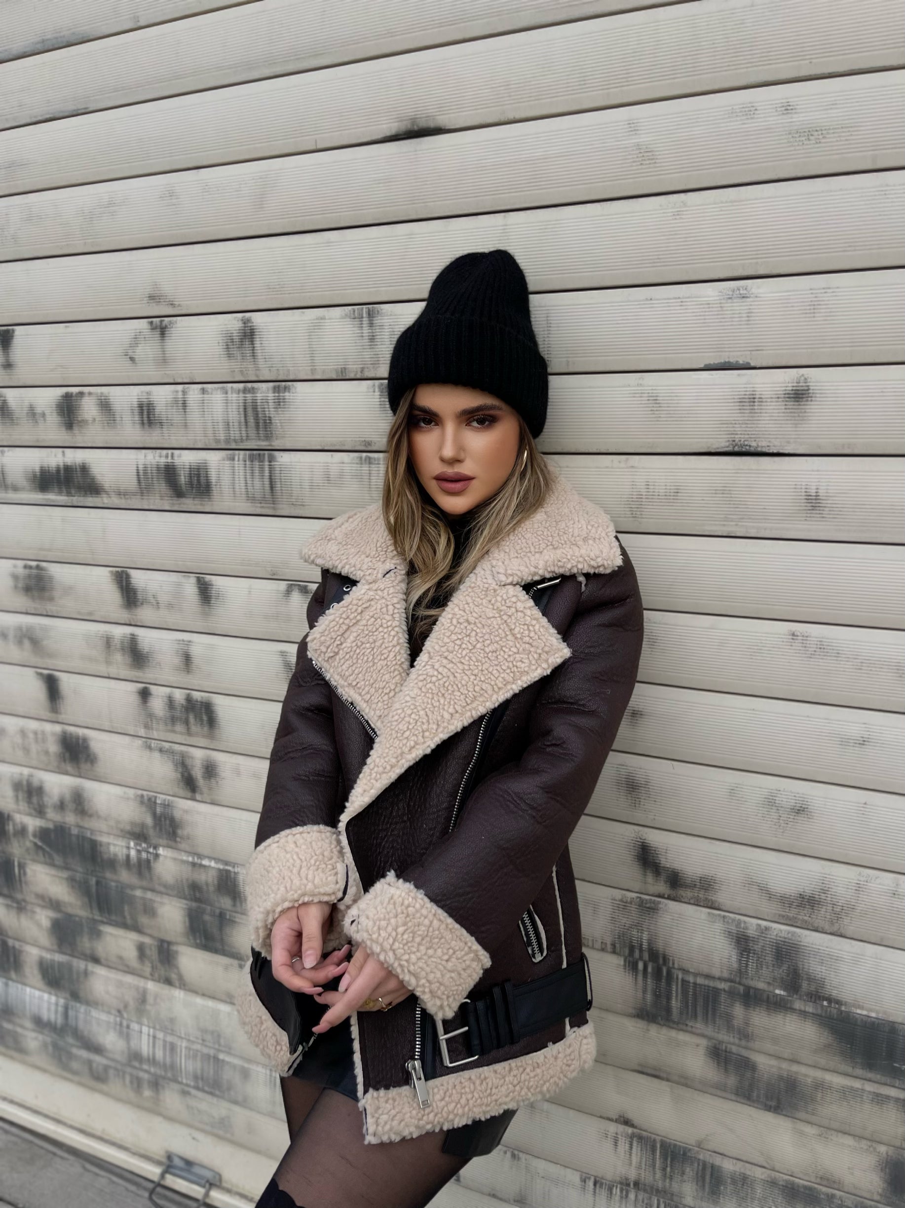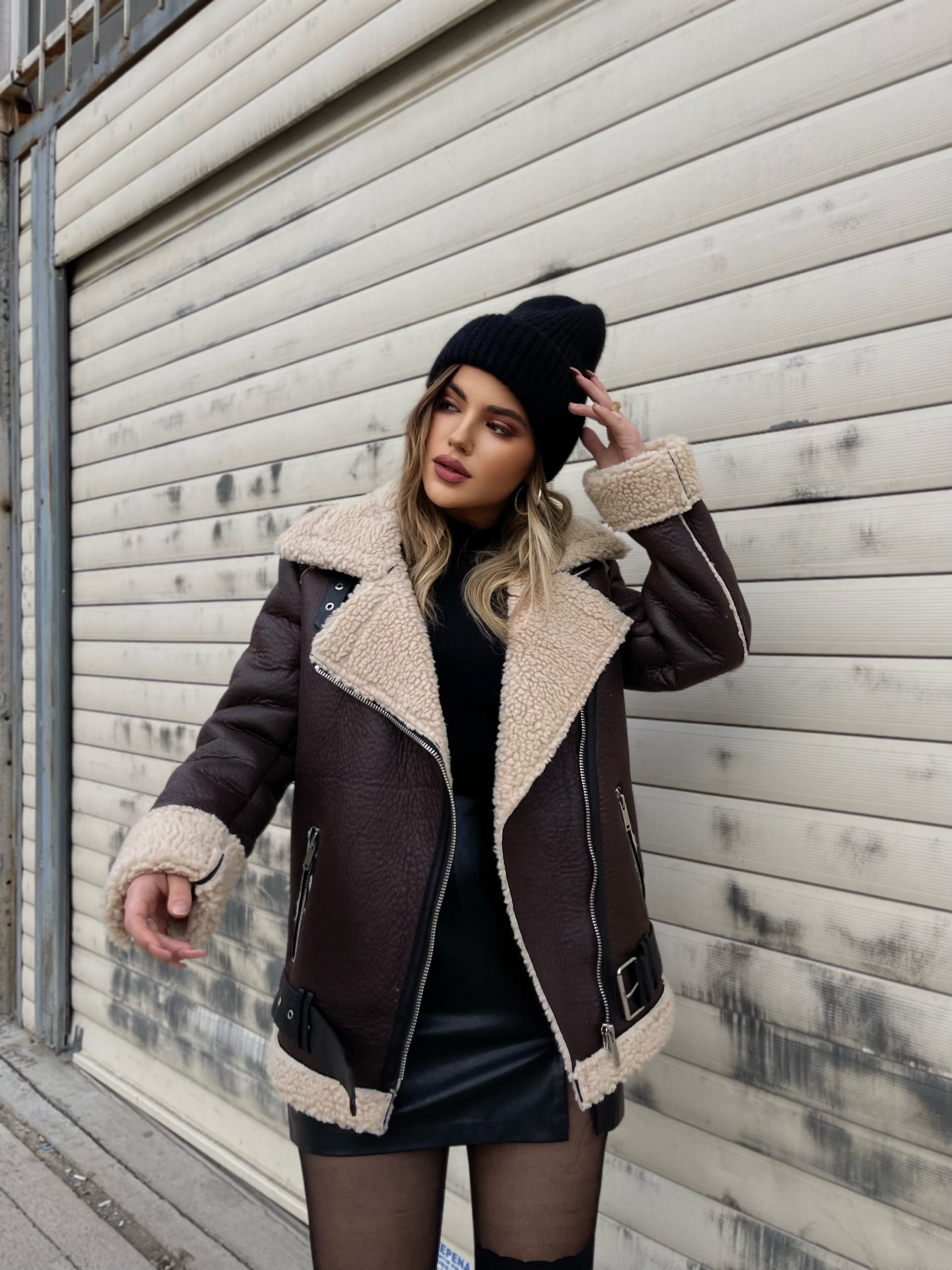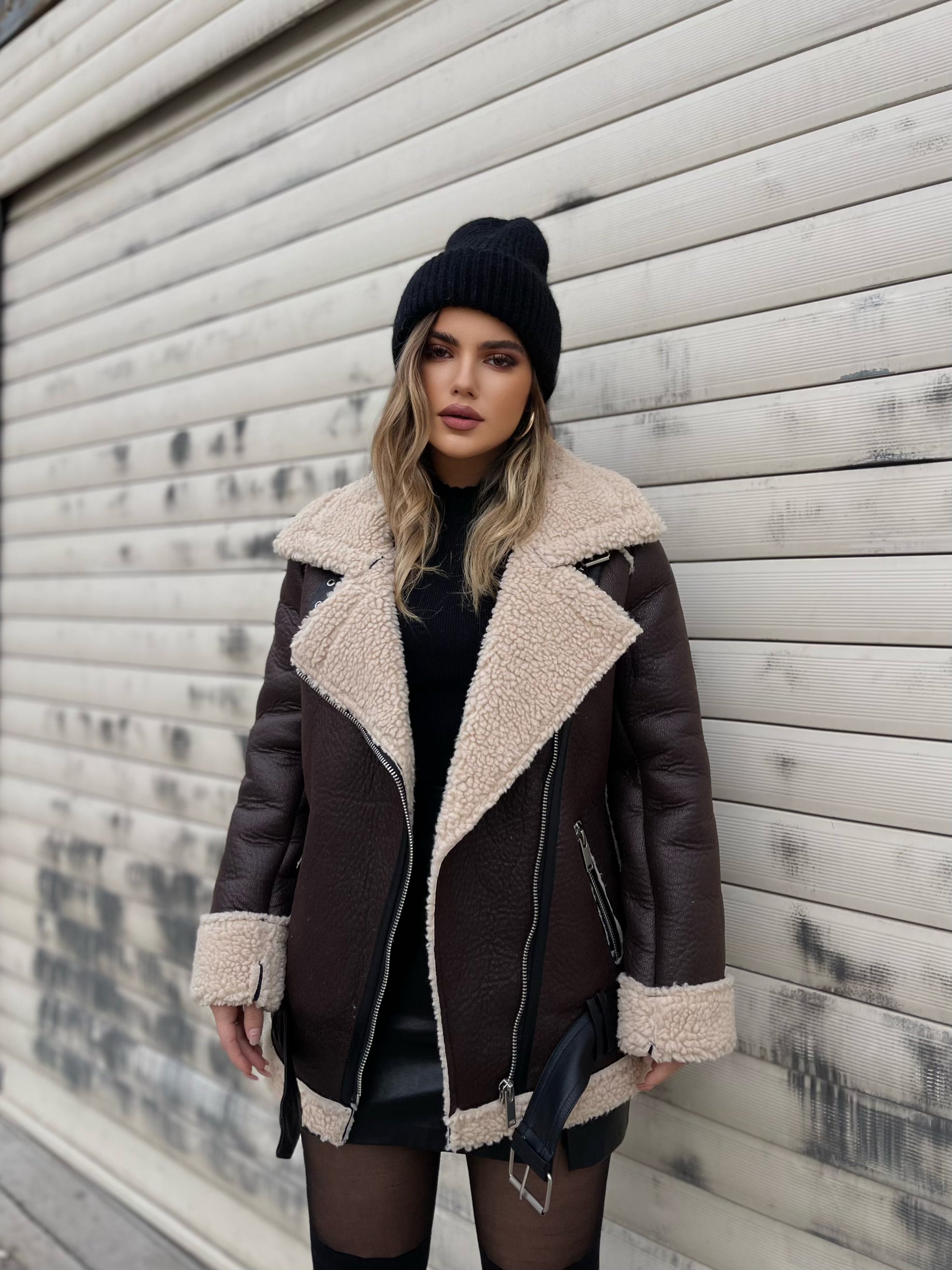 Xhup me pellush ne pjesen e brendshme me jake me kapak. Me rrip me togze ne pjesen e qafes. Xhupi mberthehet me zinxhir ne pjesen e perparme.