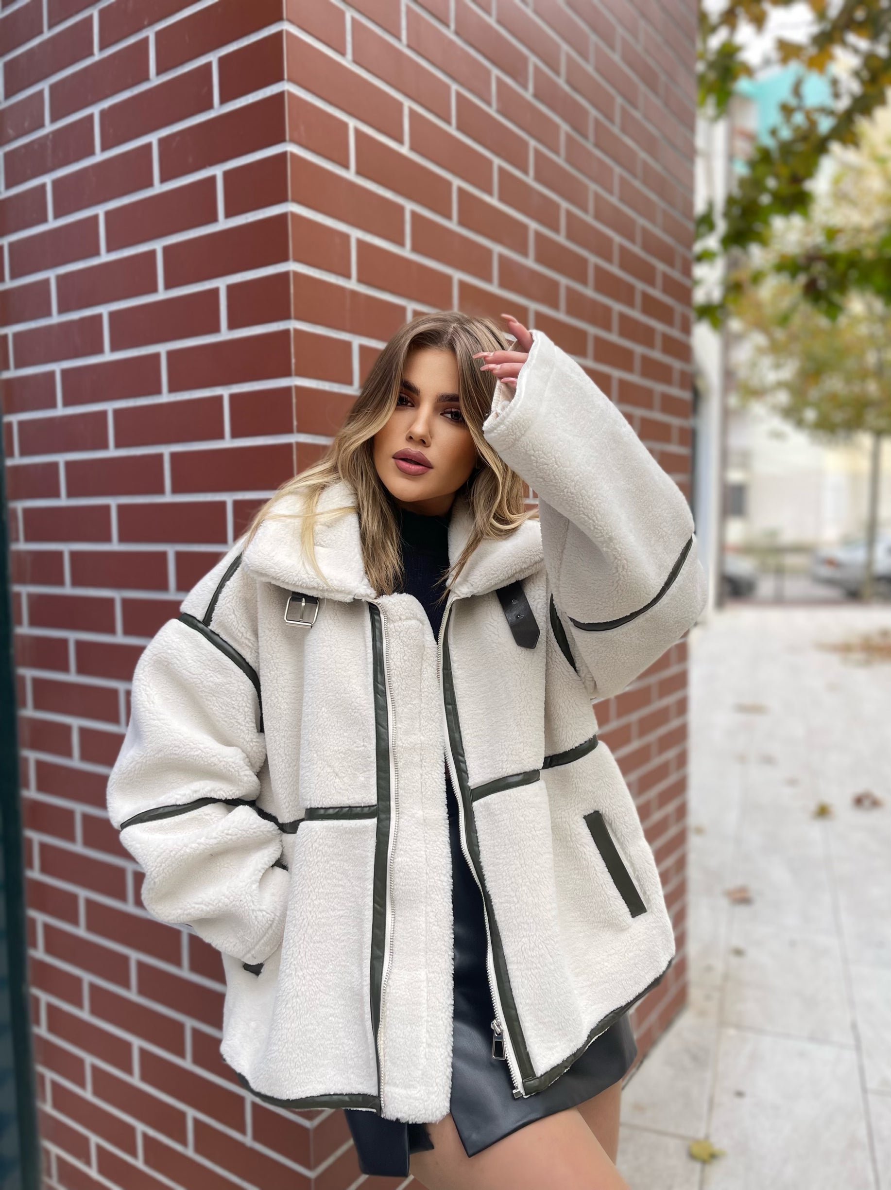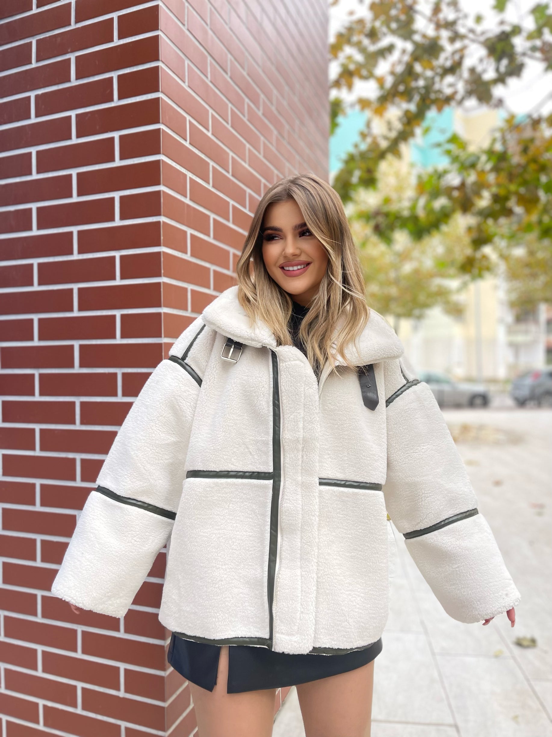 Xhup pellush i shkurter me jake me kapk me menge te gjata me xhepa ne pjesen e perparme. Mberthimi behet me zinxhir. Jake eshe me precina dhe togez ne pjesen e perparme.