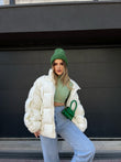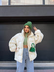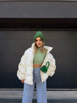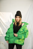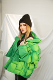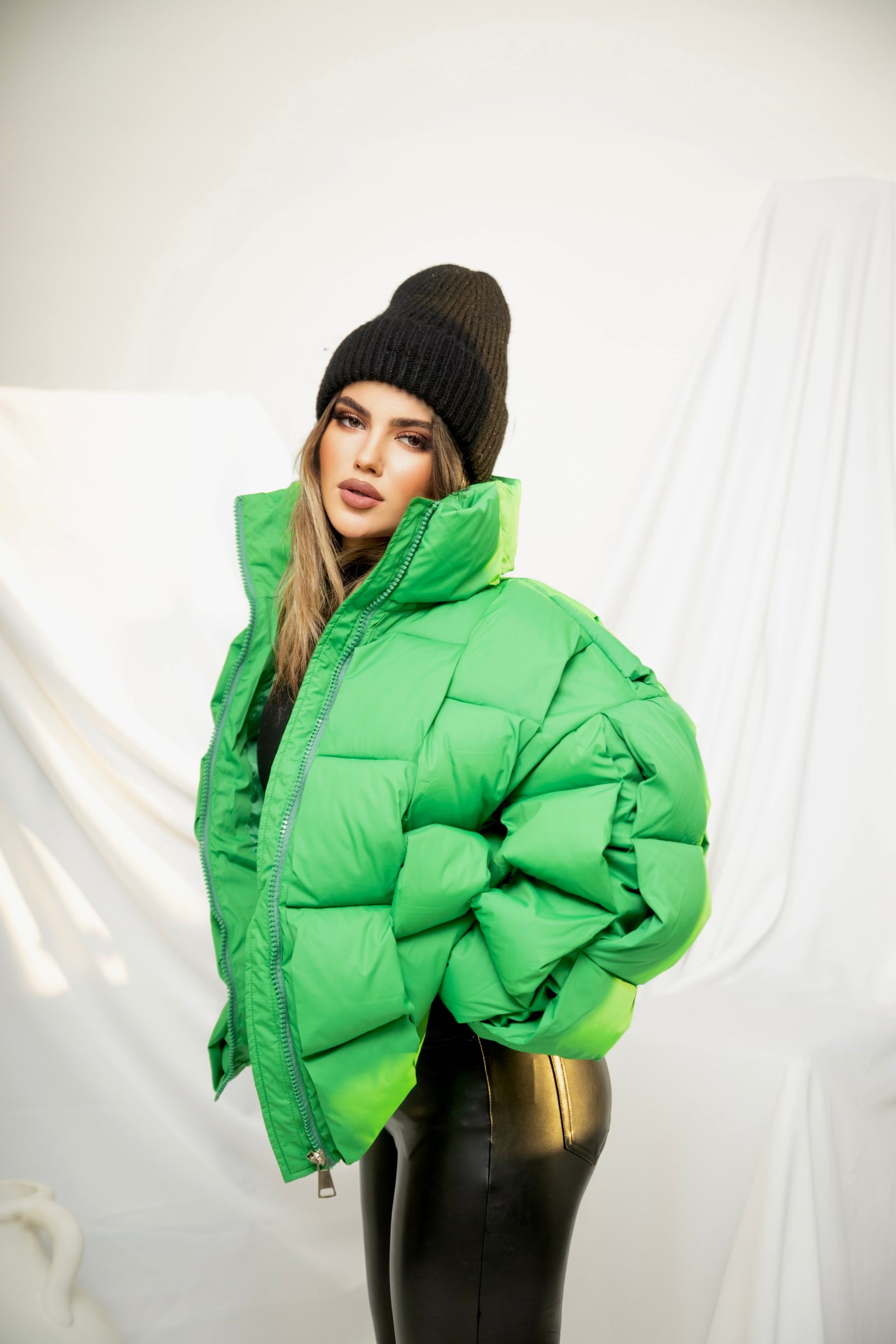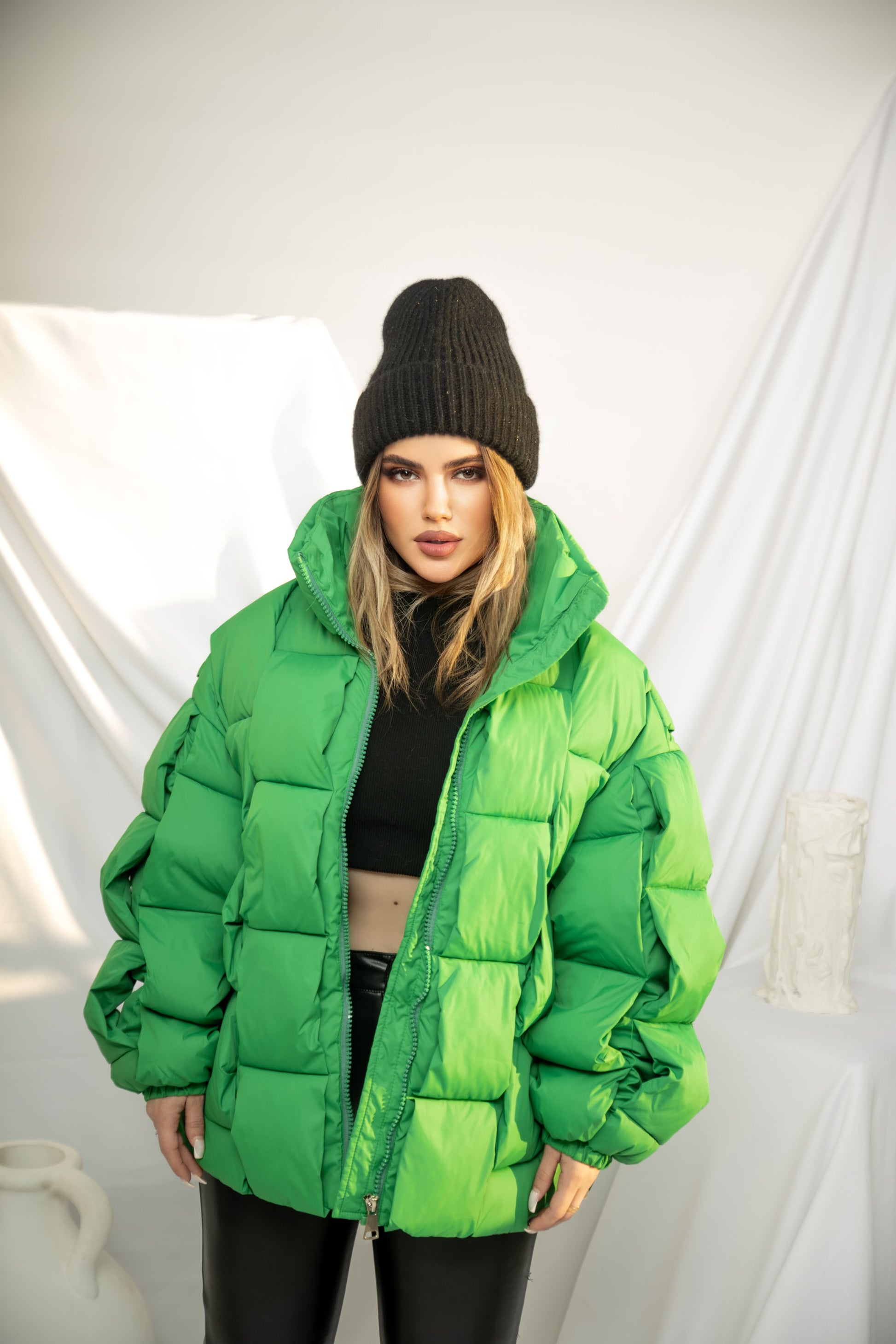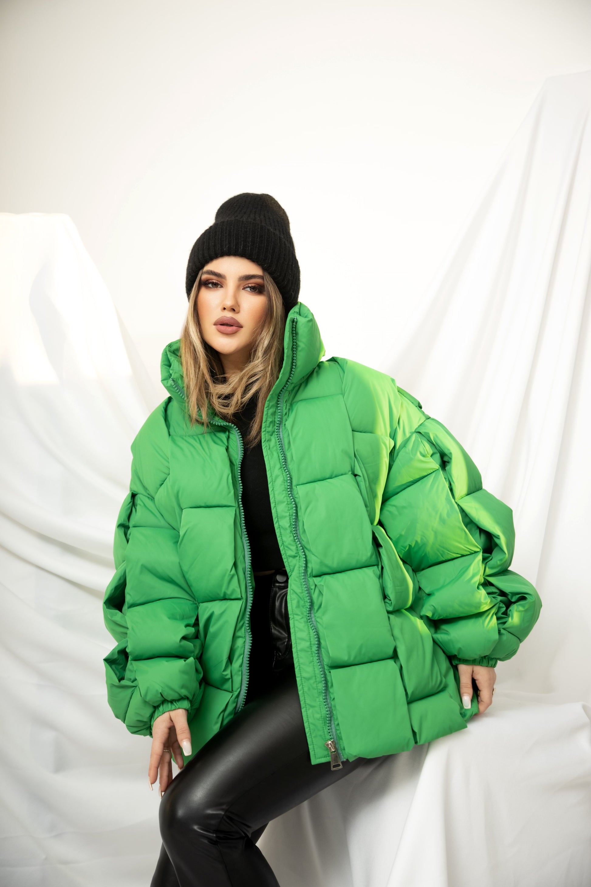 Xhup i shkurter puffer me ndarje te vogla me xhepa anesor. Mberthimi behet me zinxhir ne pjesen e perparme. Jake te madhe dhe me doreza ne fund te mengeve. Modeli vjen ne dy ngjyra:jeshil dhe i bardhe.