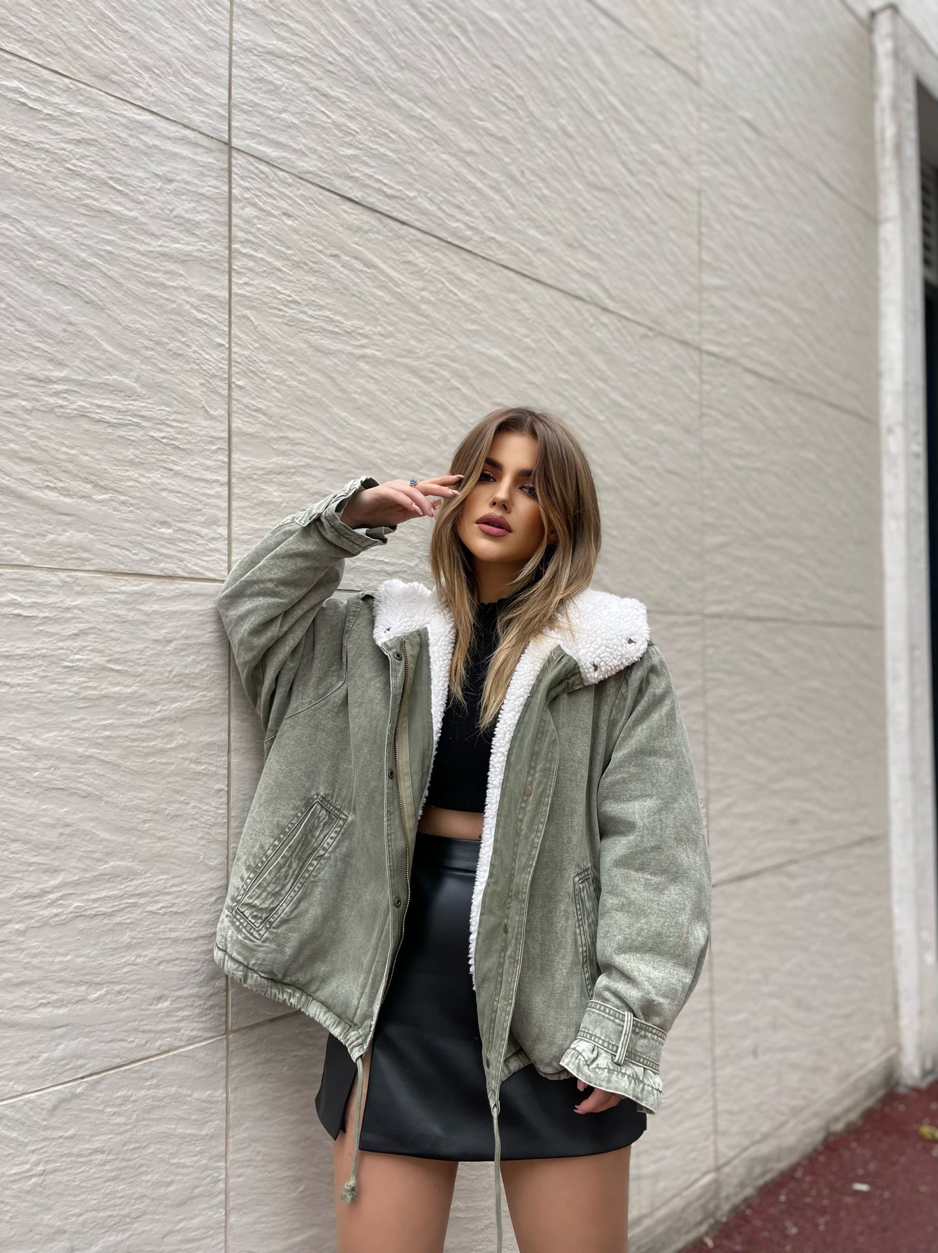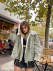 Xhup pellush me kapuc me menge te gjata. Me kapuc te bollshem me zinxhir ne pjesen e perparme. Xhepat e xhupit jane te bollshem. Ne fund xhupi eshte me llastik ne pjesen fundore. Mberthimi behet me kopsa ne pjesene perparme.